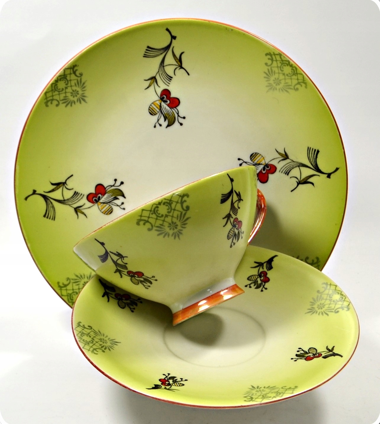 МИЛЫЙ СТАРЫЙ НАБОР ДЛЯ ЗАВТРАКА-безделушка в зеленом цвете