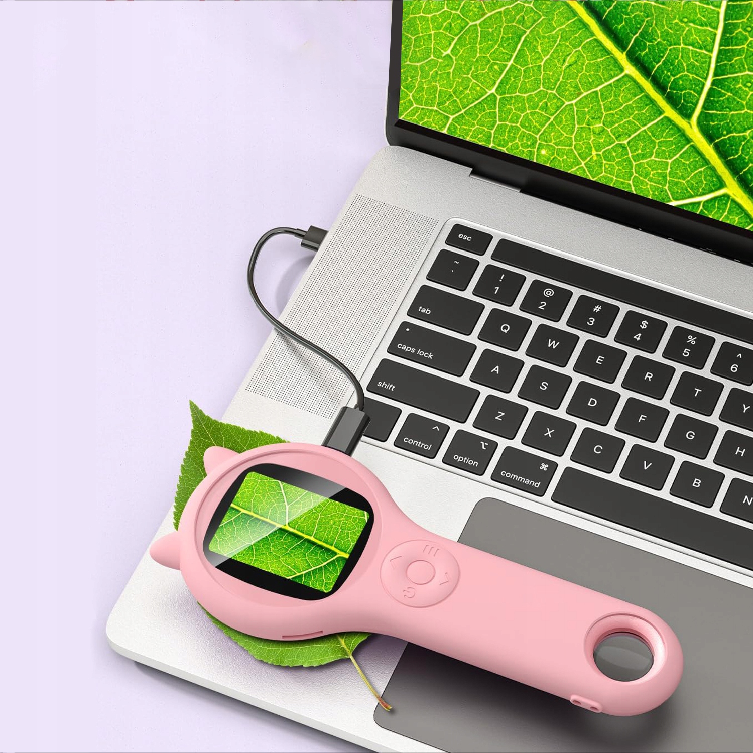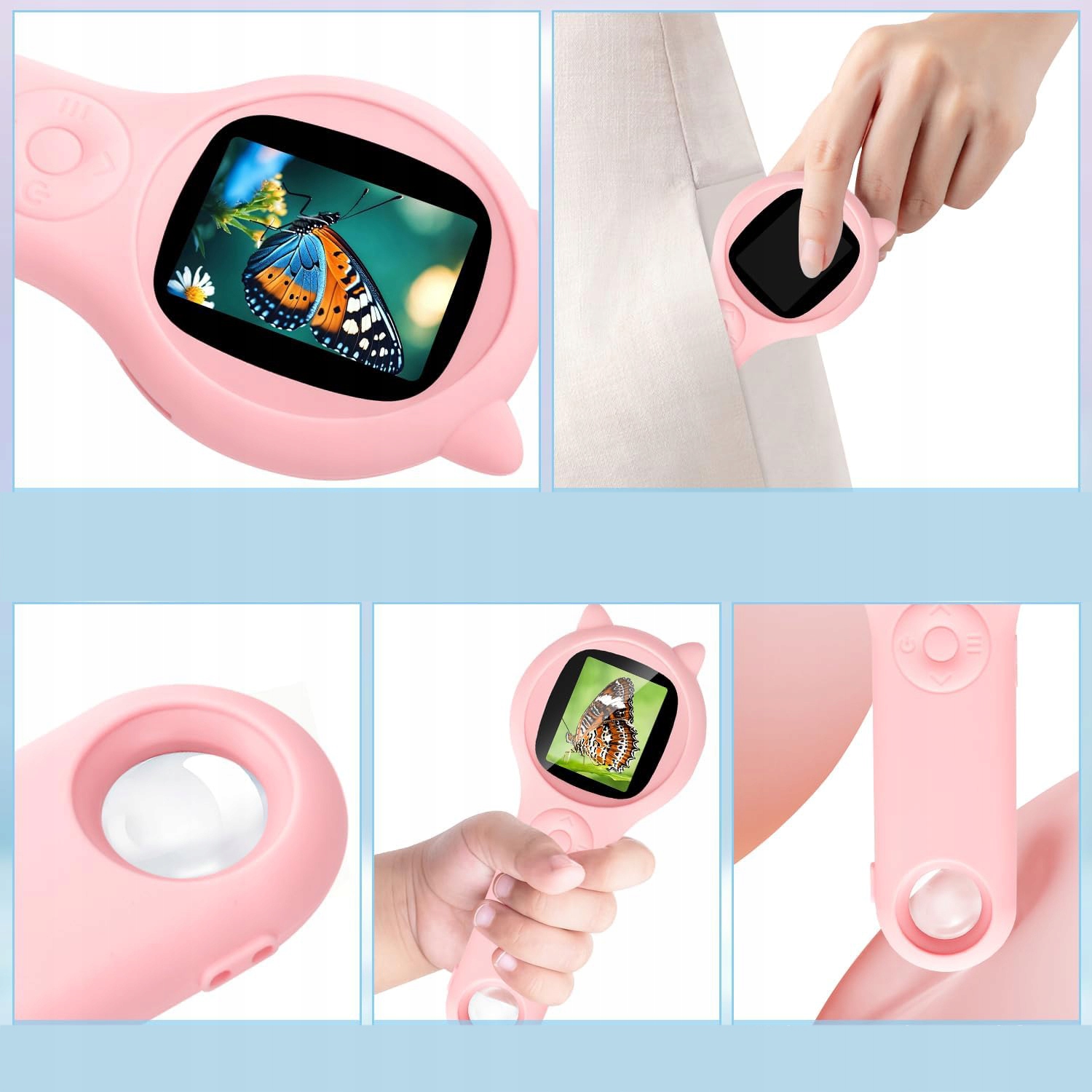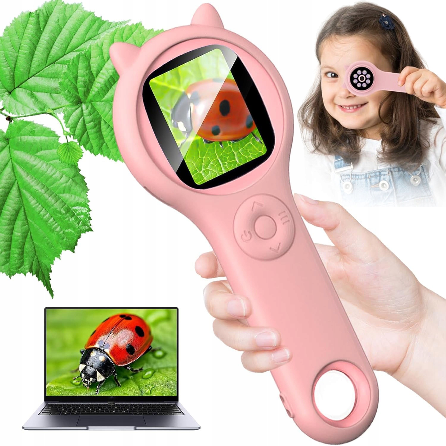 - Оснащен 2-дюймовым экраном IPS с высоким разрешением и увеличением с круглым отверстием, 8 светодиодов с тремя уровнями регулировки были размещены на задней части, адаптированы к размеру детской ручки. Методы визуализации, позволяющие детям открывать микроскопический мир во многих отношениях.