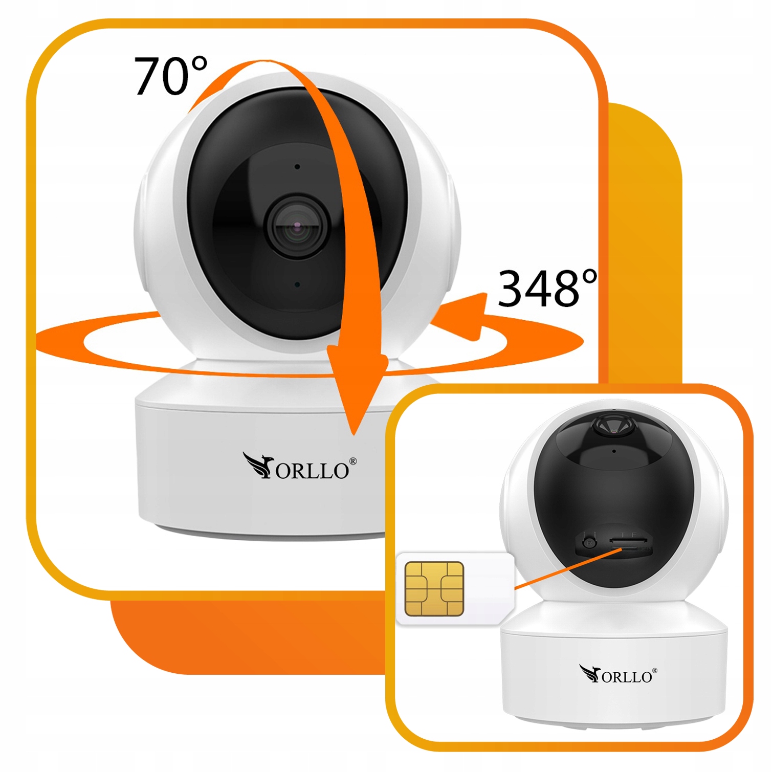 Камера Orllo W10 SIM 4K оснащена технологией GSM 4G LTE GSM, которая позволяет использовать сотовую сеть, обеспечивая постоянное соединение без необходимости доступа к WIFI. Это вращающаяся камера, которая предлагает полный диапазон движения, повернувшись на 348 ° по горизонтали и 70 ° по вертикали. Управление пониженным вращением через мобильное приложение позволяет легко отрегулировать угол просмотра в зависимости от ваших потребностей. Эта функция идеально подходит для комплексного мониторинга дома, обеспечивающего гибкость и надежность в различных условиях