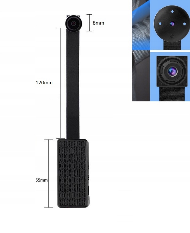 Представленная мини-шпионская камера имеет множество новейших и практичных применений при записи и фотографировании из укрытия. Он мастер камуфляжа на одежде — 8 разных решений с пуговицами. Объектив камеры крепится на усиленный ремешок длиной 14 см. Такое решение позволяет удобно установить камеру под пальто, курткой или в кармане брюк. Возможности скрытия камеры практически безграничны, а управлять камерой просто и удобно практически из любого места.