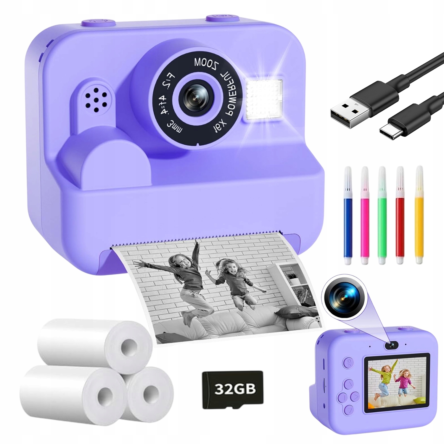 МИНИ-КАМЕРА + 3 РОЛИЦА БУМАГИ ДЛЯ ПЕЧАТИ 32 ГБ + USB