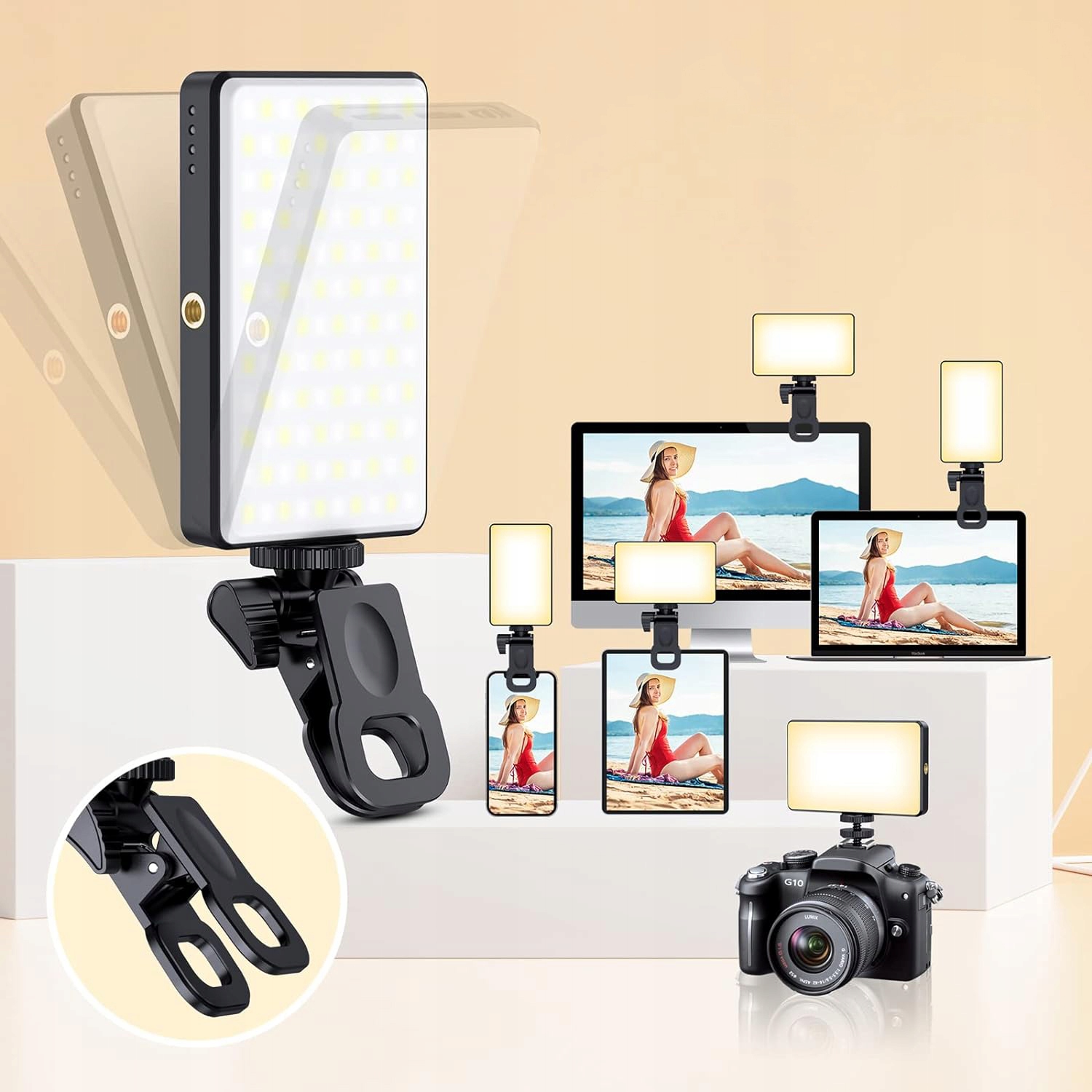 - - Благодаря удобному креплению этот светильник для селфи совместим с большинством телефонов, смартфонов, планшетов, ноутбуков и камер.