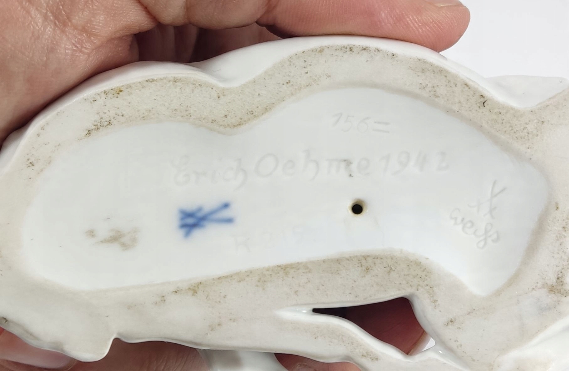 Мы предлагаем тонкую и гармоничную статуэтку лежащего осла, созданного из классического чистого белого фарфора в результате превосходного производства Миннии. Модель была разработана в 1942 году Эрихом Оэм - художником, известным своей идеальной преданностью анатомии животных и выразительной формой. Спокойство за пределами и ликвидность линии придает этой маленькой скульптуре исключительной благодати.