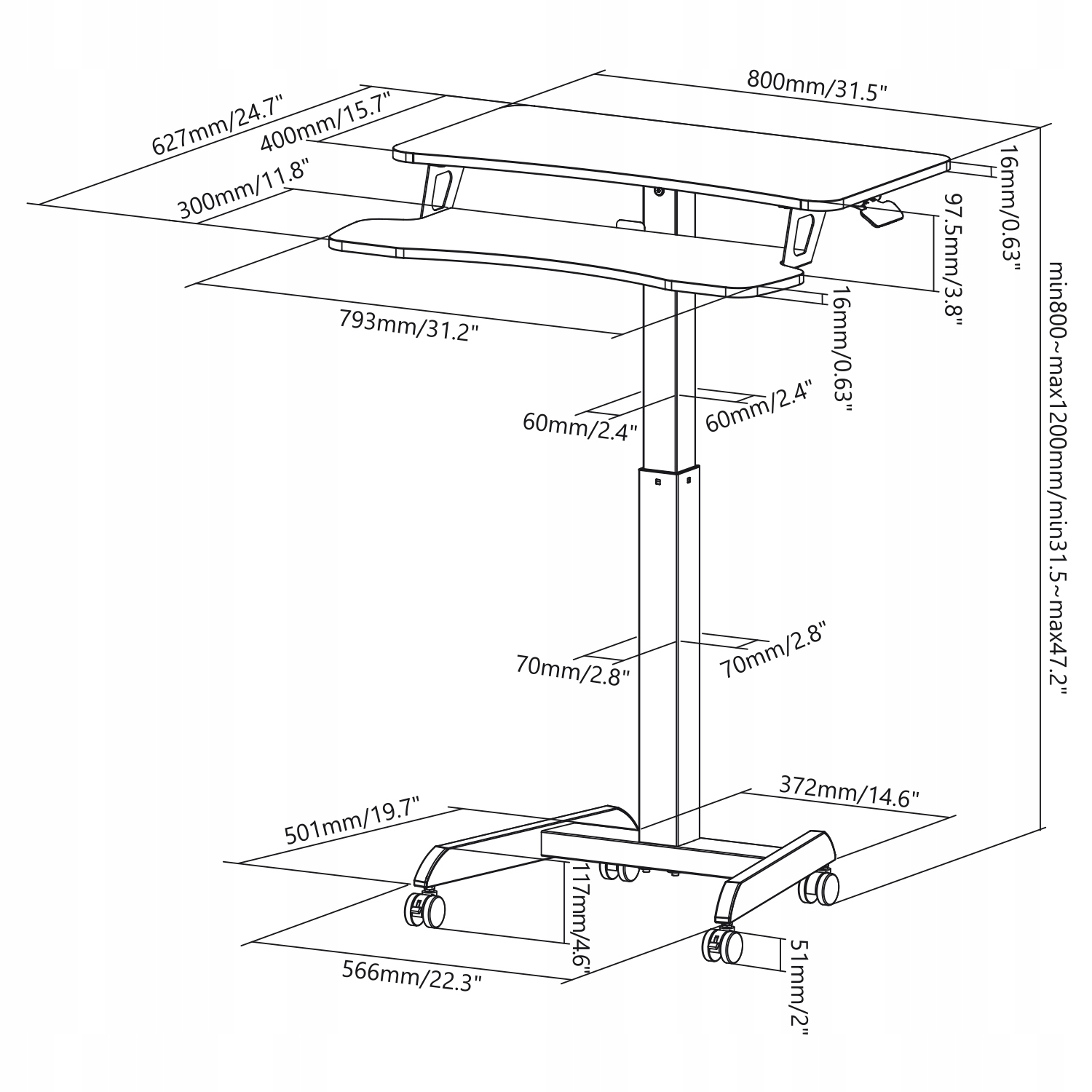 Мобильный Ergo Office ER-444 W Рабочая станция, регулировка высоты 80-120 см.