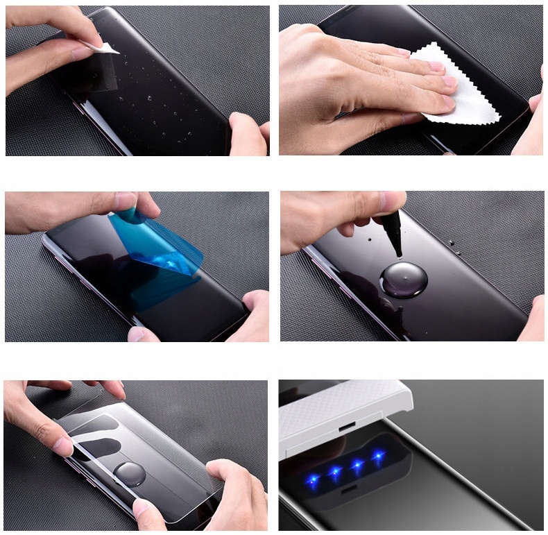 Стекло крепится с помощью клеящегося вещества на всю поверхность экрана, которое затем затвердевает с помощью УФ-лампы . В комплект поставки входит набор приложений для самостоятельной сборки.