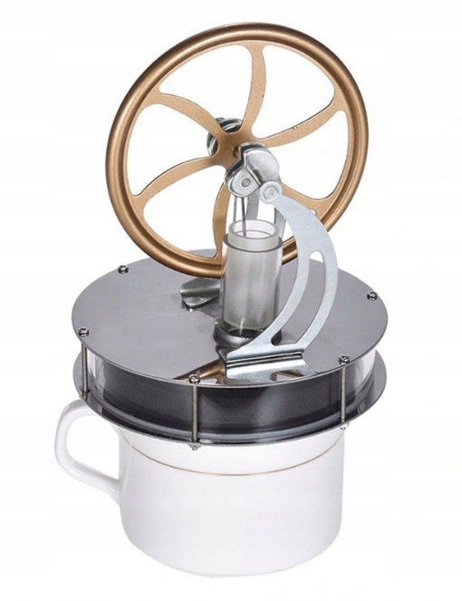 Модель можно поместить, например, на чашку с горячей водой и уже через несколько секунд ощутить действие физики, приведя в движение маховик двигателя.