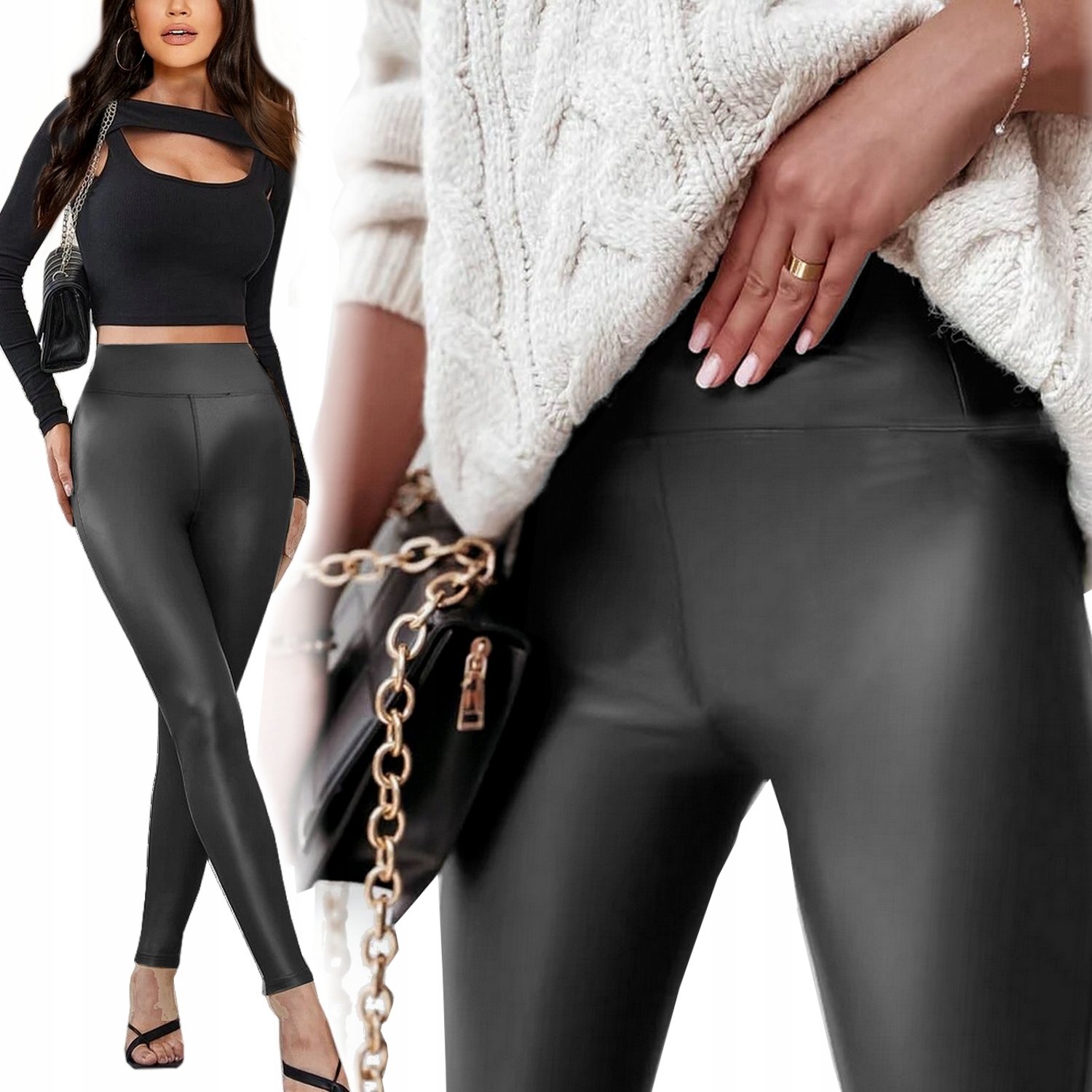 МОДНЫЕ МАТОВЫЕ ЛЕГГИНСЫ С ВЫСОКОЙ ПОСАДКОЙ, МОДЕЛИРУЮЩИЕ БРЮКИ ИЗ ЭКО КОЖИ.