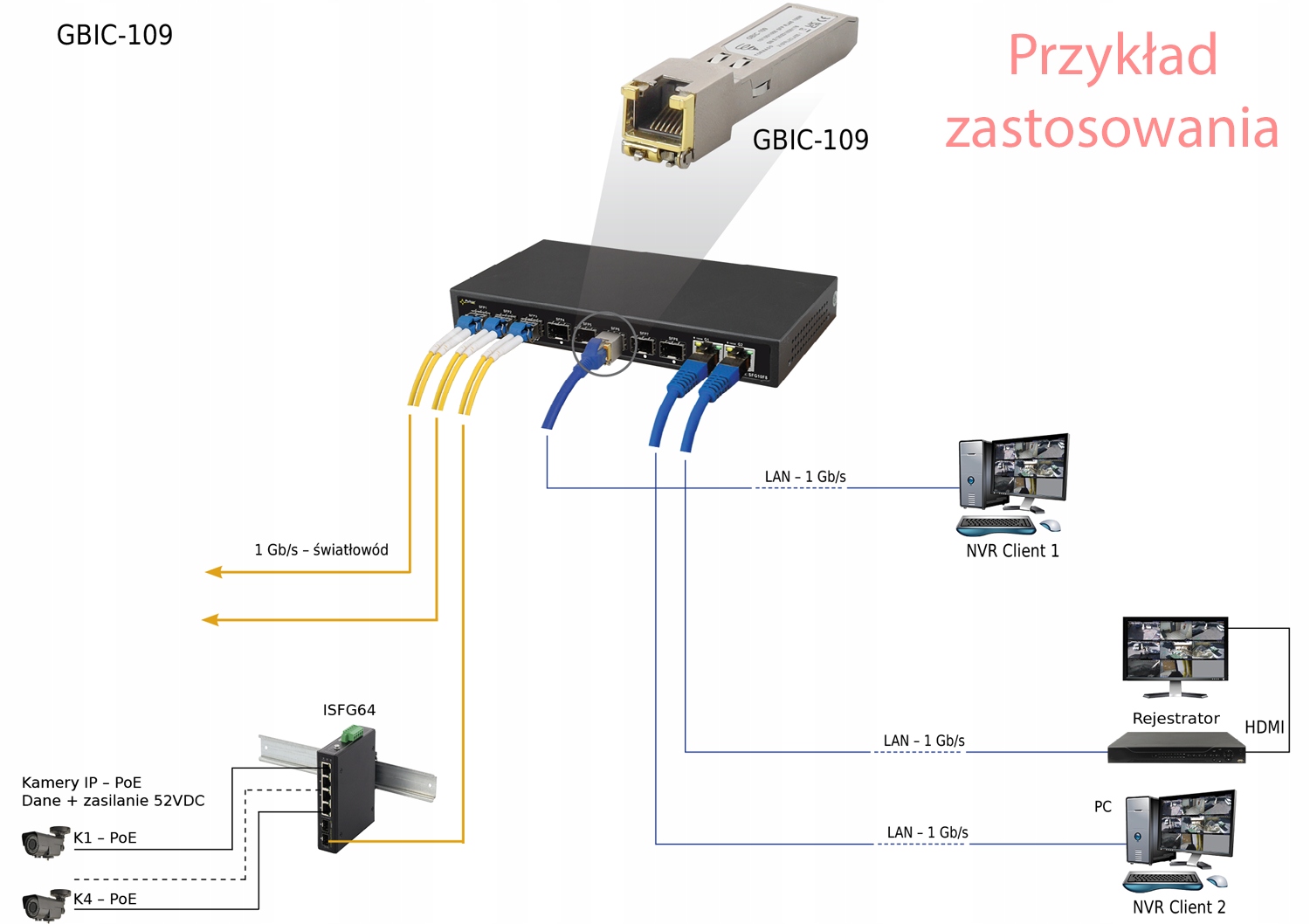 Модуль SFP GBIC-109 представляет собой модуль, обеспечивающий связь через интерфейс Ethernet. Он предназначен для передачи данных с использованием кабелей Cat. 5е (и выше) на расстоянии до 100м. Устройство оснащено функцией автосогласования скорости соединения, поэтому может работать на скоростях 10/100/1000 Мбит/с.