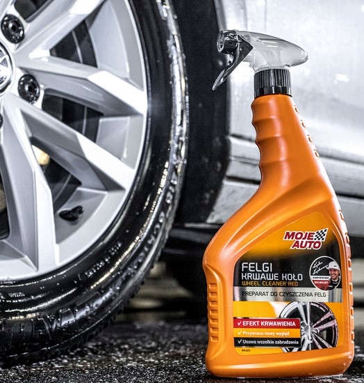 Moje Auto Krwawe Kołoto очиститель колес, эффективная чистящая жидкость с эффектом «кровопускания», вступающая в реакцию с сильными загрязнениями. Удаляет неприятные эксплуатационные загрязнения со всех типов стальных, алюминиевых, хромированных и окрашенных дисков. С помощью жидкости мытье грязных дисков становится быстрым и эффективным, без риска появления царапин.