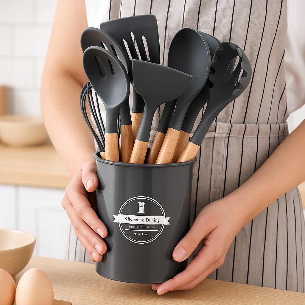 Монтеса Силиконовая кухонная посуда набор серого магазина XXL 12 ПК