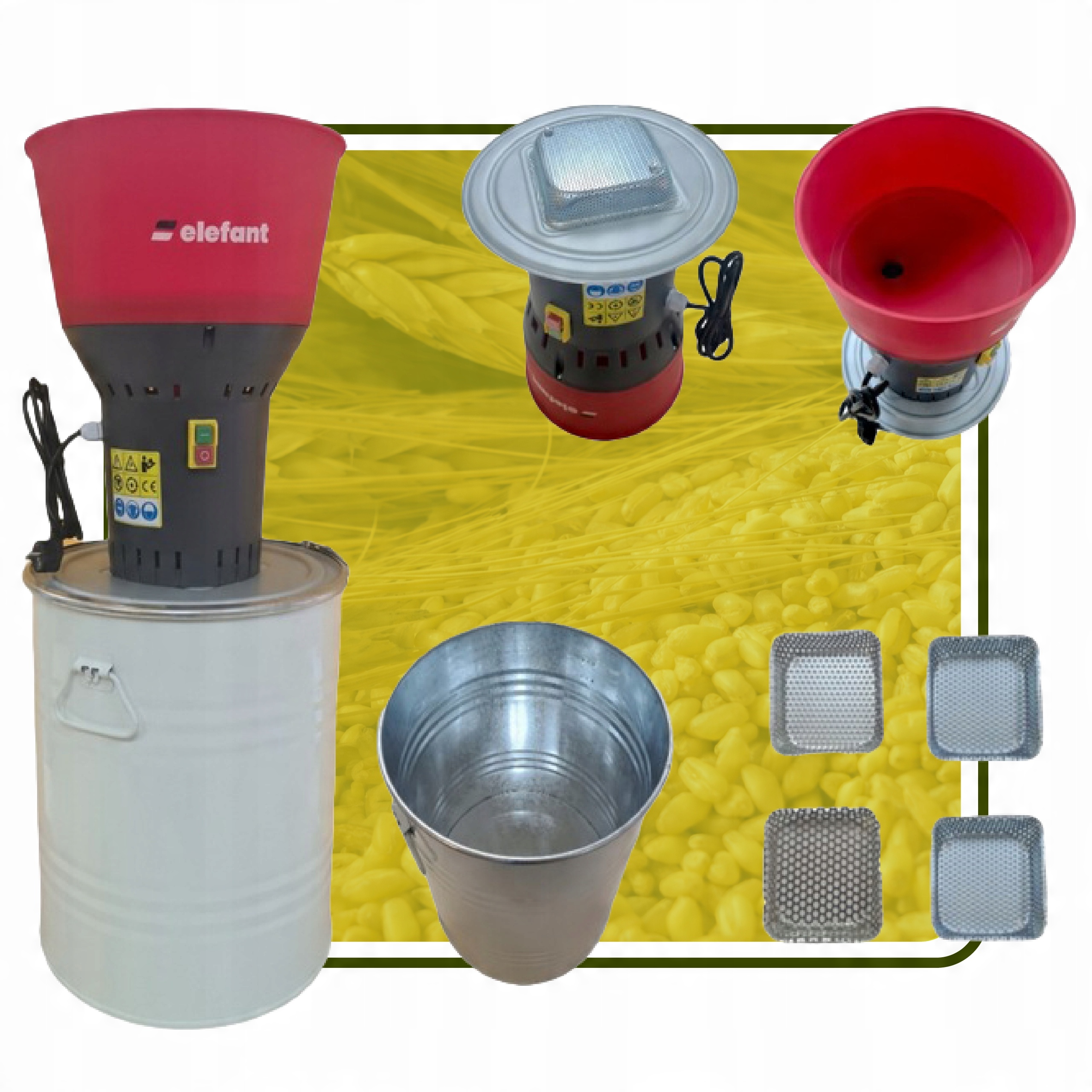 Elefant EM50 — это измельчитель для измельчения мелкого зерна. Оснащен мощным двигателем ( 1,5 кВт), поэтому он одинаково хорошо подходит для измельчения таких пищевых продуктов, как сахар и соль. Что немаловажно, он имеет тепловую защиту двигателя, которая предотвращает нагрев и обеспечивает длительную бесперебойную работу. По этой причине устройство идеально подходит для небольших фермерских хозяйств.