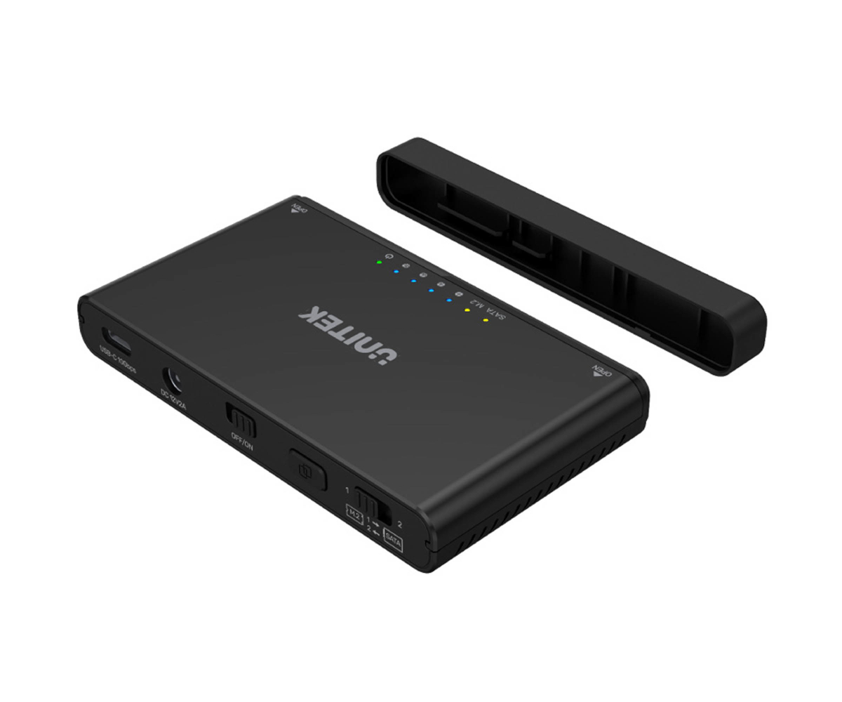 - Мост SATA III 6 Гбит/сУниверсальный адаптер SATA поддерживает все диски SATA III HDD и SSD размером 2,5" и 3,5" . Чтобы обеспечить 3,5-дюймовые накопители достаточным запасом энергии, в комплект входит мощный блок питания 12 В/2 А. Диски SATA также монтируются без инструментов. Когда мост USB-SATA не используется, он закрывается пластиковой крышкой.Скорость USB 3.2 Gen 2Порт USB-C в корпусе совместим с Стандарт USB 3.2 Gen 2, обеспечивающий передачу данных со скоростью до 10 Гбит в секунду. Разъем обратно совместим с предыдущими версиями USB. В комплект входит кабель для передачи данных USB-C — USB-C длиной 30 см с адаптером USB-A. Чипсет поддерживает технологию UASP (протокол USB Attached SCSI) и инструкции TRIM (команда управления набором данных ATA). С помощью UASP USB-устройство может ставить команды в очередь и выполнять несколько команд одновременно. Это увеличивает количество операций чтения и записи в среднем на 30% по сравнению с традиционными USB-устройствами. Команды обрезки сообщают SSD, какие блоки данных больше не используются, и позволяют повторно заполнить их данными. Это также повышает производительность накопителя и продлевает срок его службы. Автономное клонирование накопителя. Как и другие док-станции Unitek, S1222A предлагает возможность автономного клонирования. Можно скопировать данные с накопителей SATA 2,5/2,5" на диск M.2 или наоборот. Ход процесса клонирования отображается светодиодами на корпусе. Диск B, к которому вы находитесь Данные копирования должны быть равны или больше, чем на исходном диске. Подробная инструкция по эксплуатации включена в комплект.