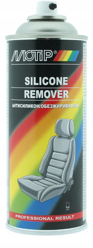 MOTIP SILICONE REMOVER — средство для удаления остатков силикона, грязи, жира, масла, воска, смолы, клея. Особенно рекомендуется перед применением. .новый слой лака, так как он улучшает адгезию последующих слоев.