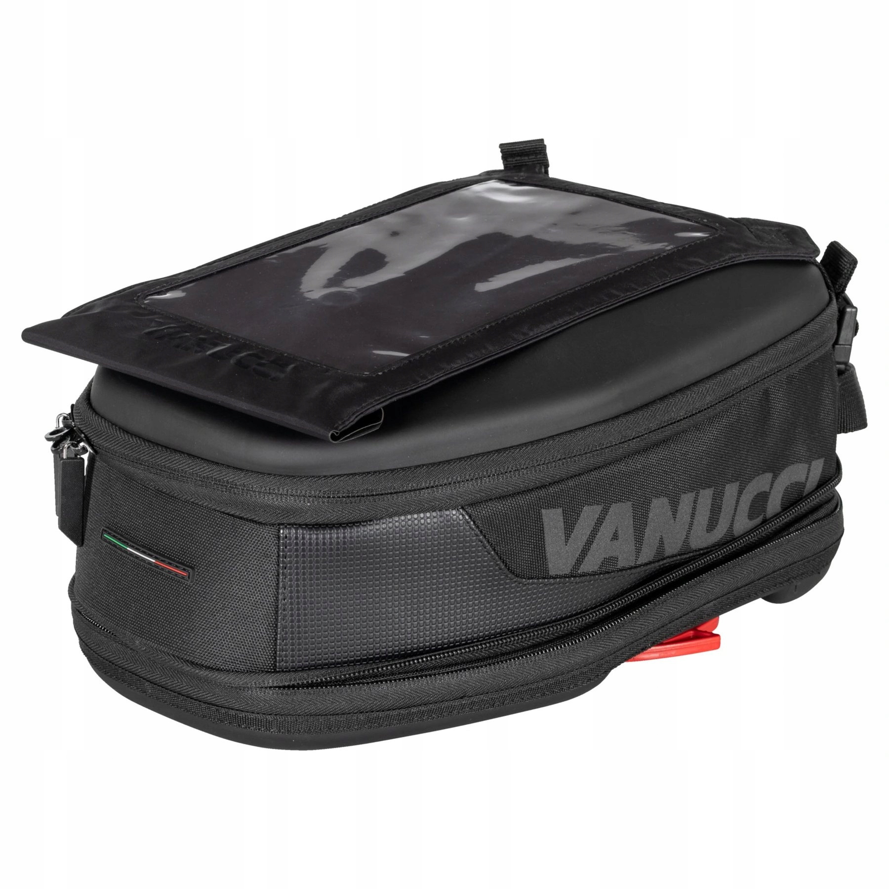 Вы можете временно прикрепить сумку на бак Vanucci *Tanklock Sportivo 5–8 л* к верхней части бака мотоцикла. Это очень удобно, когда нужно взять с собой несколько мелких предметов, например, ключи, деньги, документы, носовые платки, мобильный телефон или средство для чистки козырьков. Vanucci *Tanklock Sportivo 5–8 л*, специально разработанный для использования с кольцом бака Givi *Tanklock*, по существу состоит из прочного, устойчивого к ультрафиолетовому излучению, водонепроницаемого и прочного текстильного материала. . В этом варианте очень практичны съемная водонепроницаемая внутренняя сумка и возможность увеличения основного отделения с 5 до 8 литров с помощью молнии. * Sportivo * также имеет ручку для переноски и светоотражающую надпись Vanucci.