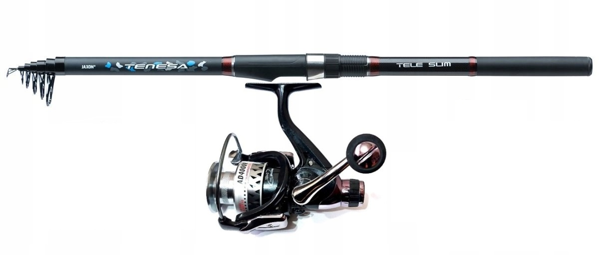 Универсальный телескопический стержень с длиной 3,6 млн. Хорошо для веревки и леща. Вес утора 321 g. Действие: 10-40 г . Ручка для исправления катушки, усиленной и украшенной металлическими элементами. Отличное изготовление и хорошее качество! Вес катушки 385 g. Идеально подходит для этого стержня. Емкость катушки: 0,40/110, 0,35/150, 0,30/180 м. Запасная шпуля. Некрученный кривошип с удобной ручкой из сильного пластика. Задний тормоз. Точная система рыболовства. Компьютер -банный ротор, титановый ролик. Это свет. Запасная катушка.