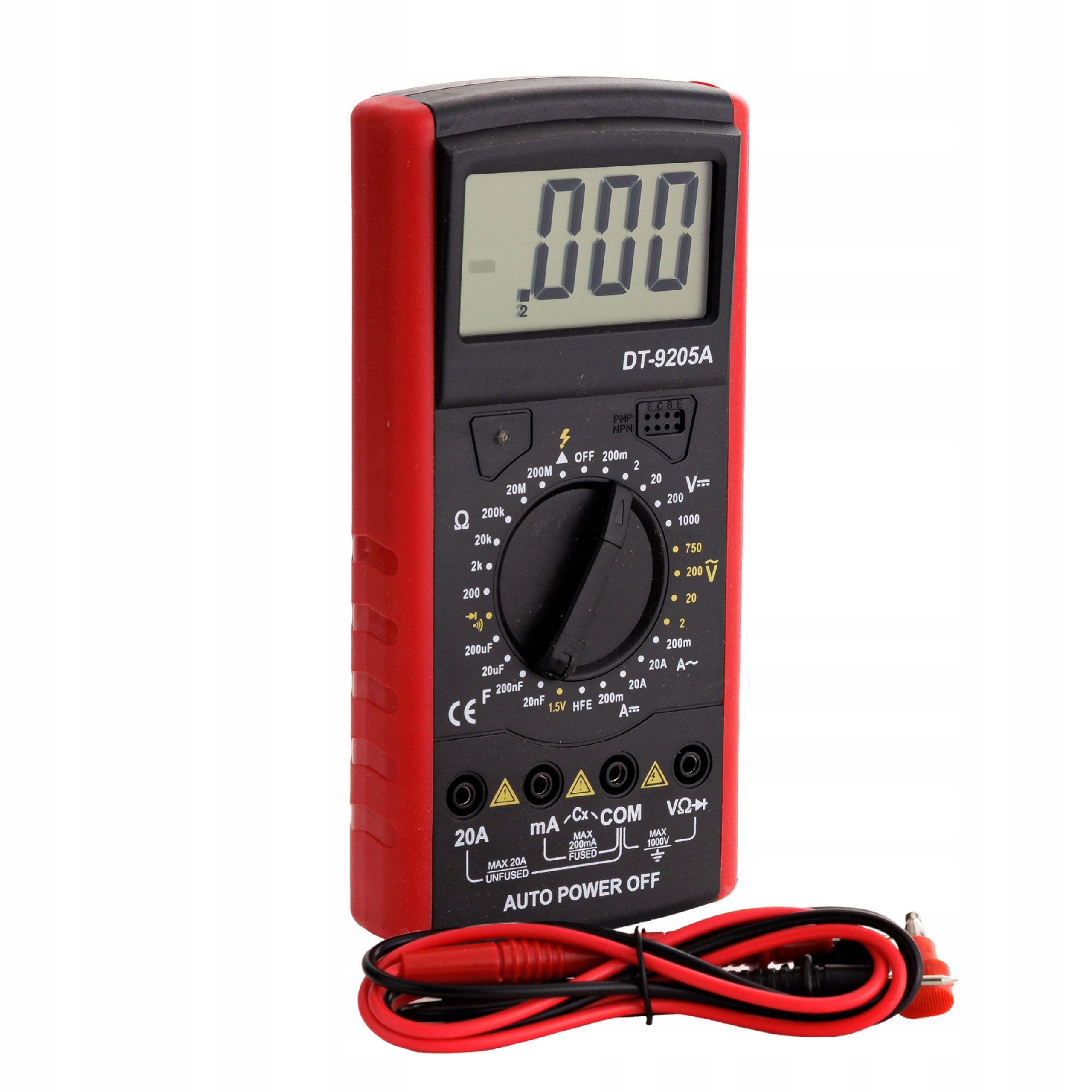 ? Питание и дополнительные функции: • Функция автоматического питания - автоматическое выключение • ЖК -дисплей - большие числа • Измеренные розетки: • 20a (неисправный предохранитель) • MA (максимум 200 мА слился) • com • Vω (максимум 1000 В)