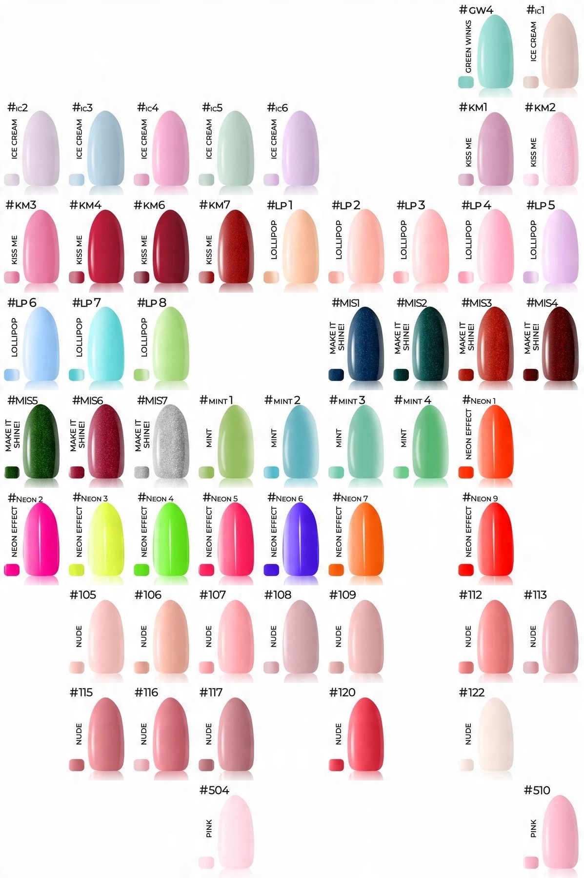 При выборе цвета в сообщении продавцу указывайте точные номера цветов (без названий коллекций), которые можно найти в левом верхнем углу каждого цвета лака. Это значительно ускорит процесс выполнения заказа.