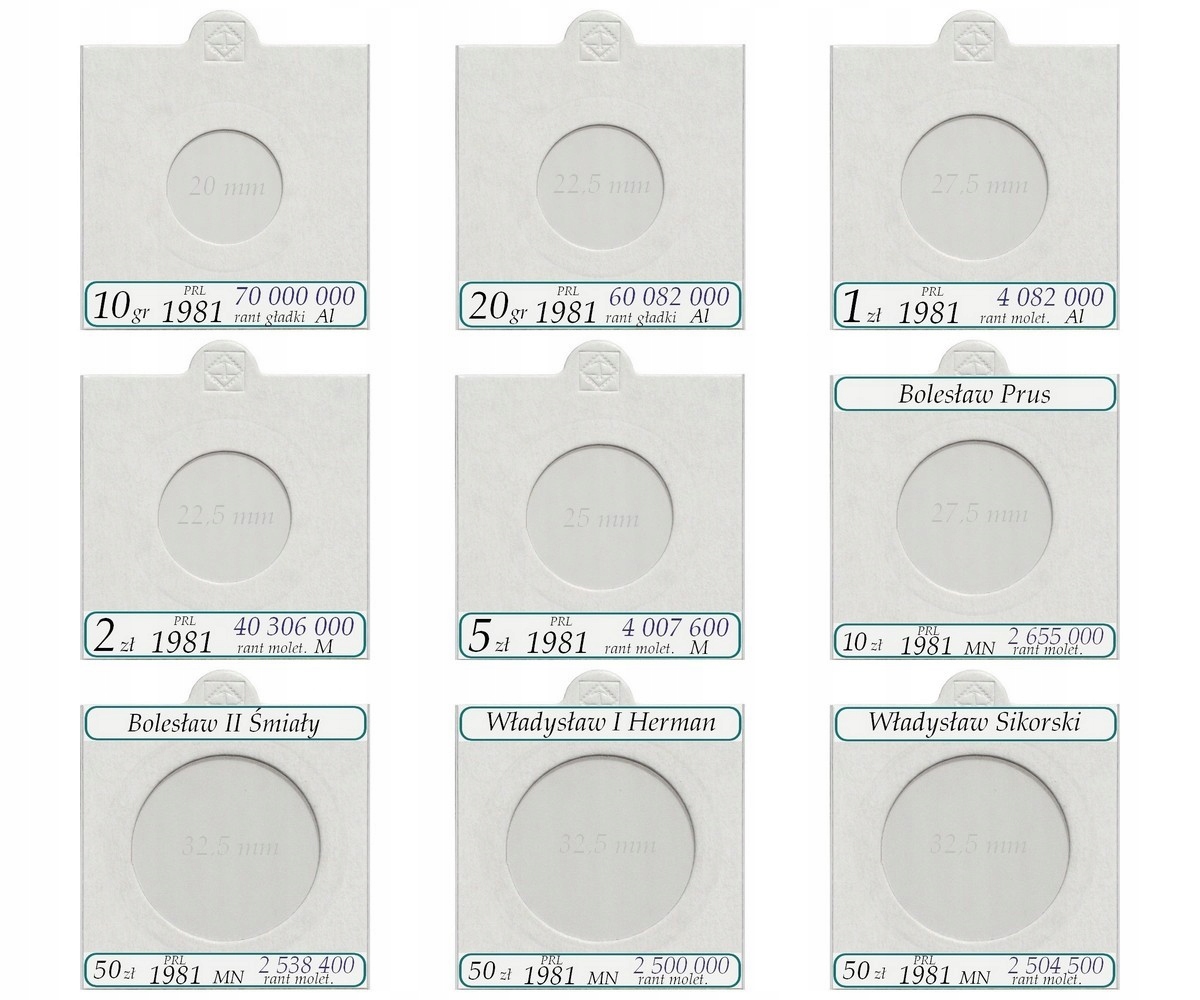 Набор 267 держателей монет PRL 1949-1990 + описания