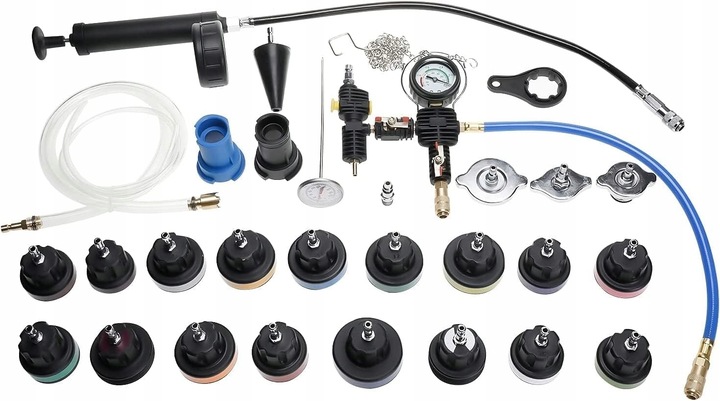 КОМПЛЕКТ из 28 предметов для проверки герметичности системы охлаждения и детектора утечек.