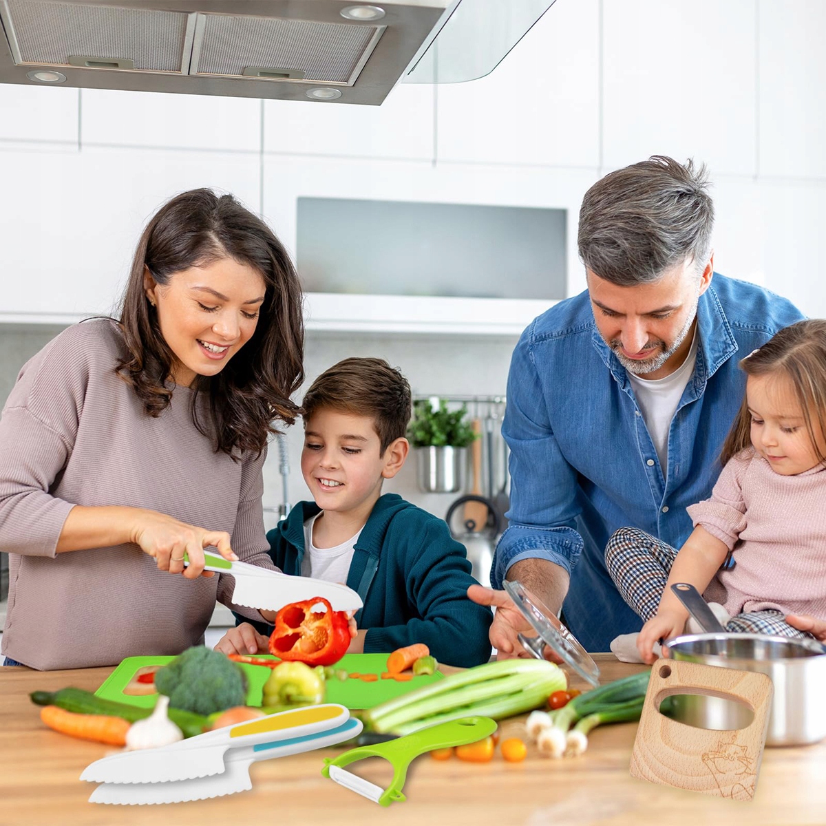 🥑🥑wielofunkcyjny Zestaw Kuchenny dla dzieci Z nożem do Owoców I Warzyw Może Być używany do Krojenia Owoców, Warzyw, Tostów, Sera, Ciast I Innych. Дети могут готовить сладкие бутерброды, фруктовые салаты, пиццу, печенье, пирожные и другие блюда с помощью игрушки Монтессори от 3 лет, таких как семейные встречи, пикники, вечеринки по случаю дня рождения, родители и дети. Нож для детей от 3 лет можно использовать для завтрака, еды, ужина и даже десертов