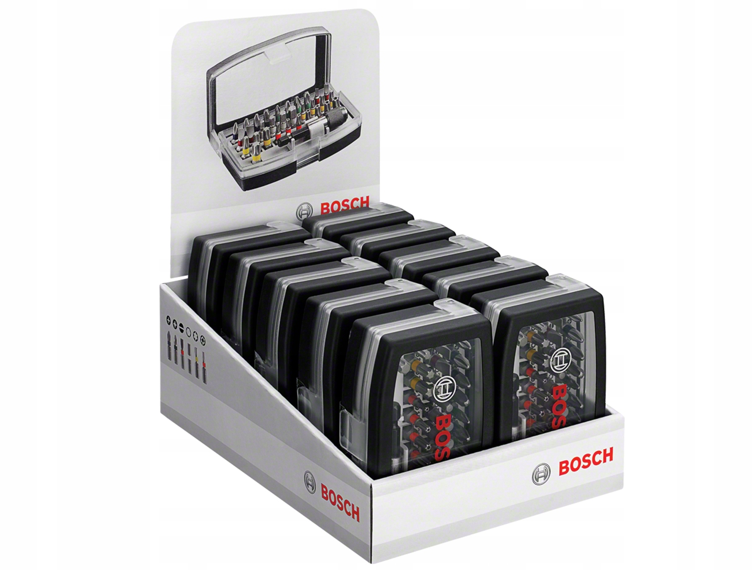 - В этот набор отверток BOSCH, состоящий из 32 предметов, входят как стандартные плоские, крестовые насадки и насадки Torx, так и специальные насадки для винтов уникальной формы. Благодаря этому, независимо от типа винта или винта, у вас будет подходящая насадка для выполнения работы.