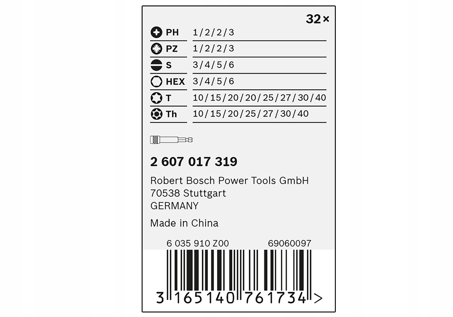 Набор бит EXTRA HAR Bosch 32 шт. PH PZ Torx HEX с ручкой ¼ дюйма, универсальный