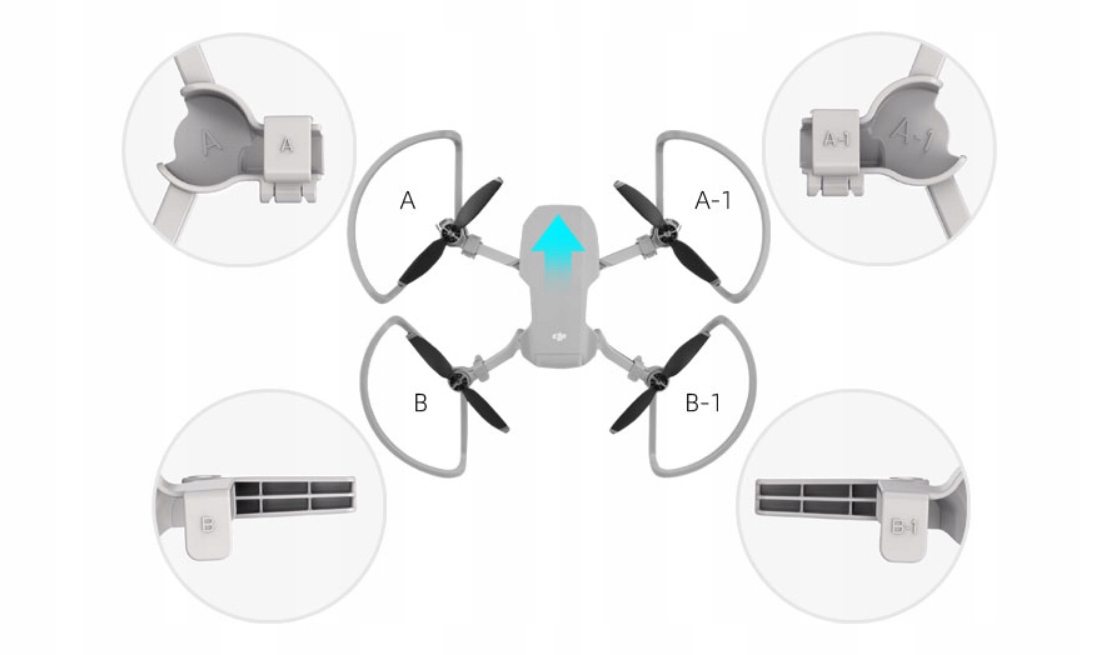 - Простая сборка без необходимости демонтажа пропеллеров при установке чехлов.