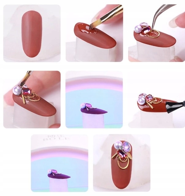 ✅ Украшения можно наносить двумя способами: с помощью клея для кончиков ногтей или путем заливки их в гель.