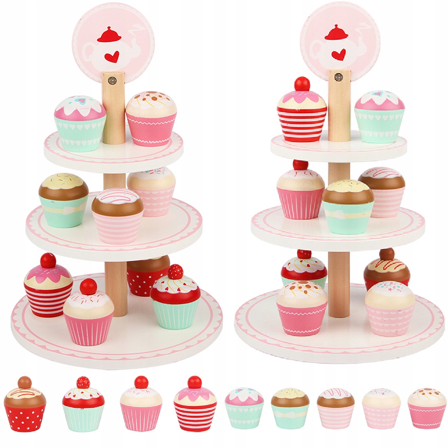 ❤️Этот соблазнительный набор деревянных кексов с тарелкой станет прекрасным дополнением детской кухни или магазина. Каждый кекс имеет уникальный стиль, разные цвета и украшения. Четыре капкейка сверху дополнительно украшены очаровательной вишенкой. Уникальным элементом набора также является стильная и практичная двухъярусная подставка для торта, на которой можно красиво презентовать капкейки. Сохраняйте элегантность при встрече с друзьями или семьей❤️