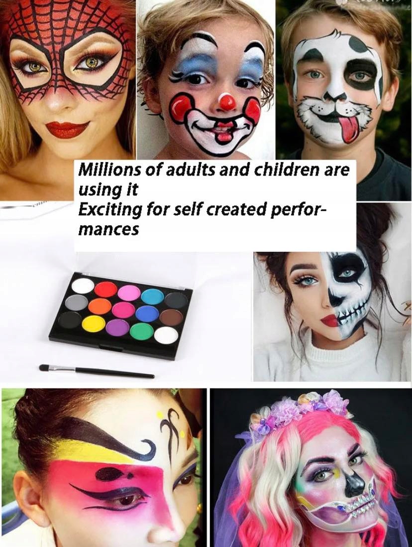 МОЮЩИЕСЯ КРАСКИ ДЛЯ ЛИЦА НАБОР КРАСОК ДЛЯ ТЕЛА ИЗ 15 ЦВЕТОВ ДЛЯ ДЕТЕЙ