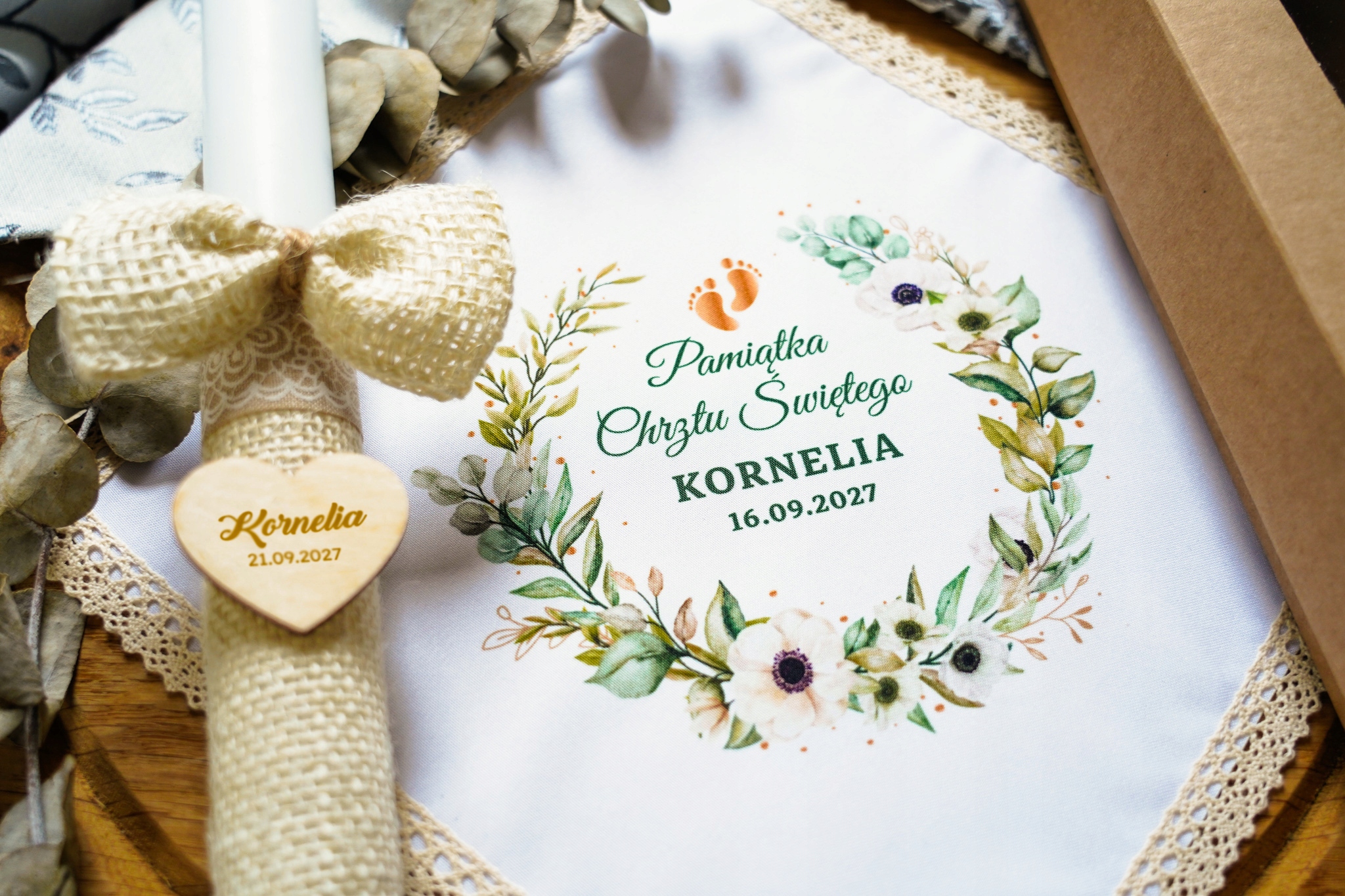 НАБІР ДЛЯ ХРЕЩЕННЯ СВІЧКА ДЛЯ ХРЕЩЕННЯ КОРОЛЬКА З КОЛЬОРОВИМ ГРАВІЮВАННЯМ ДЛЯ ХРЕСТИННОГО ОДЯГУ