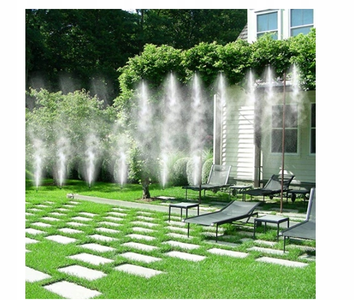 - Водная завеса работает без использования электричества: просто подсоедините шланг к садовому крану, и форсунки автоматически начнут распылять туман.