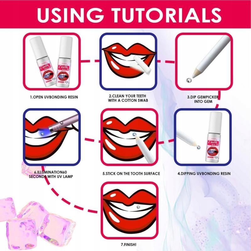 3. Разработан с широким спектром применения и подходит для украшения зубов или маникюра благодаря наличию более 20 бриллиантов и высококачественного ультрафиолетового светодиода.