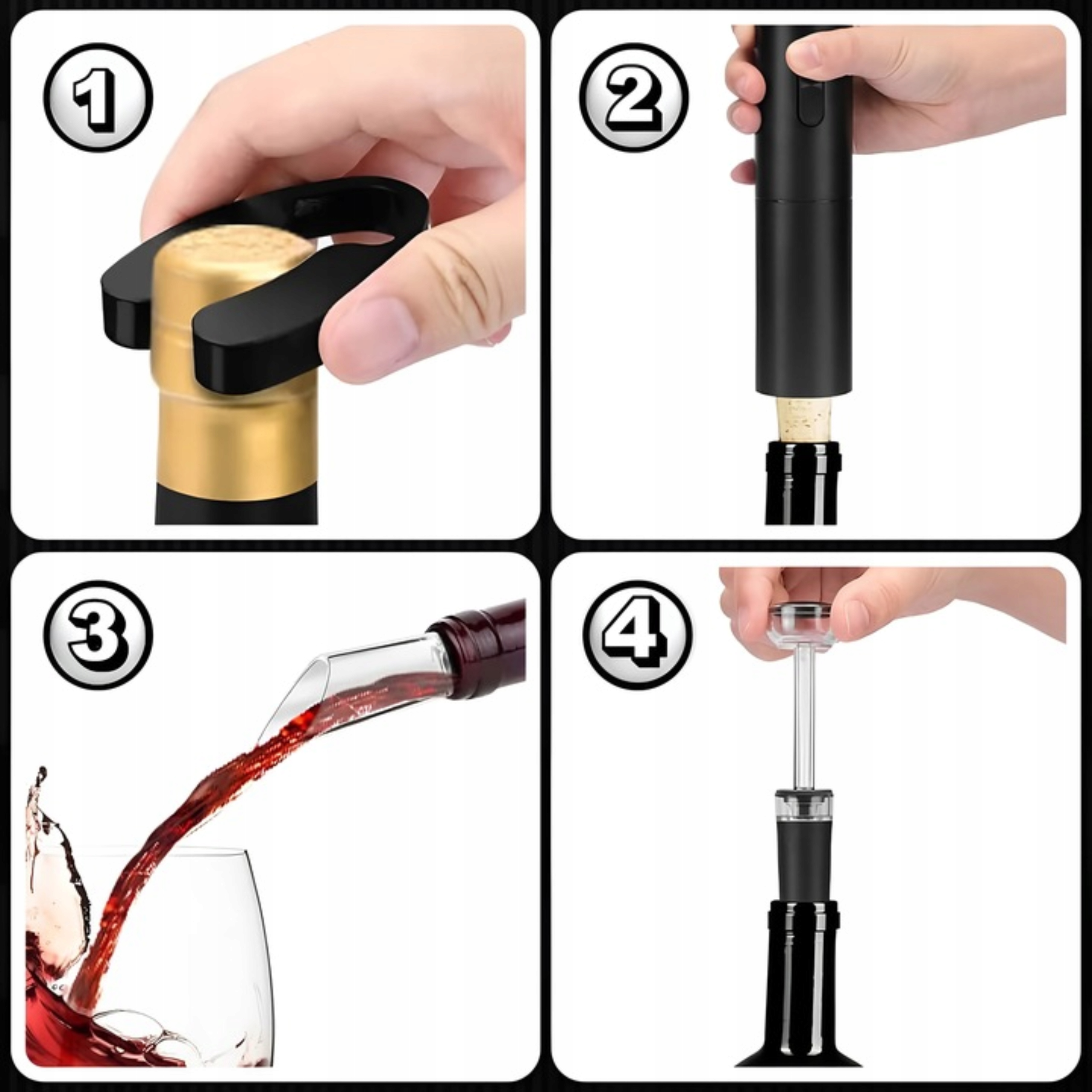✔spresowe Действие. Electric Wine Opener позволяет вам открыть бутылку всего за 6-8 секунд, что означает, что вы можете наслаждаться своим любимым вином почти сразу.