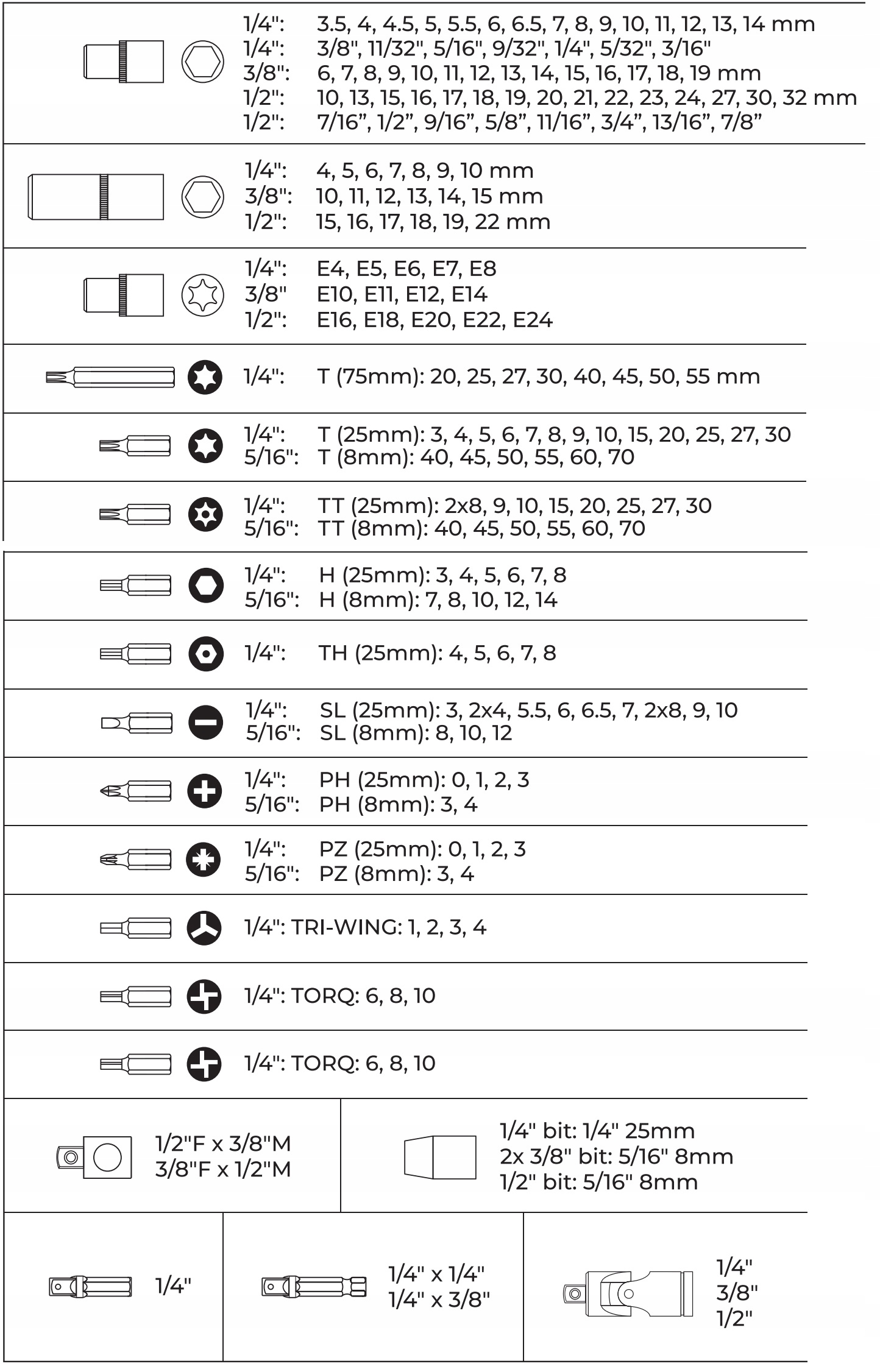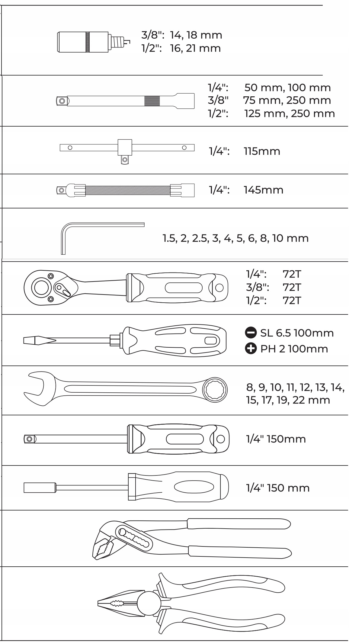 набор гаечных ключей и инструментов 1/4 '' 3/8 '' 1/2 '' 237 El. Stalco h1>