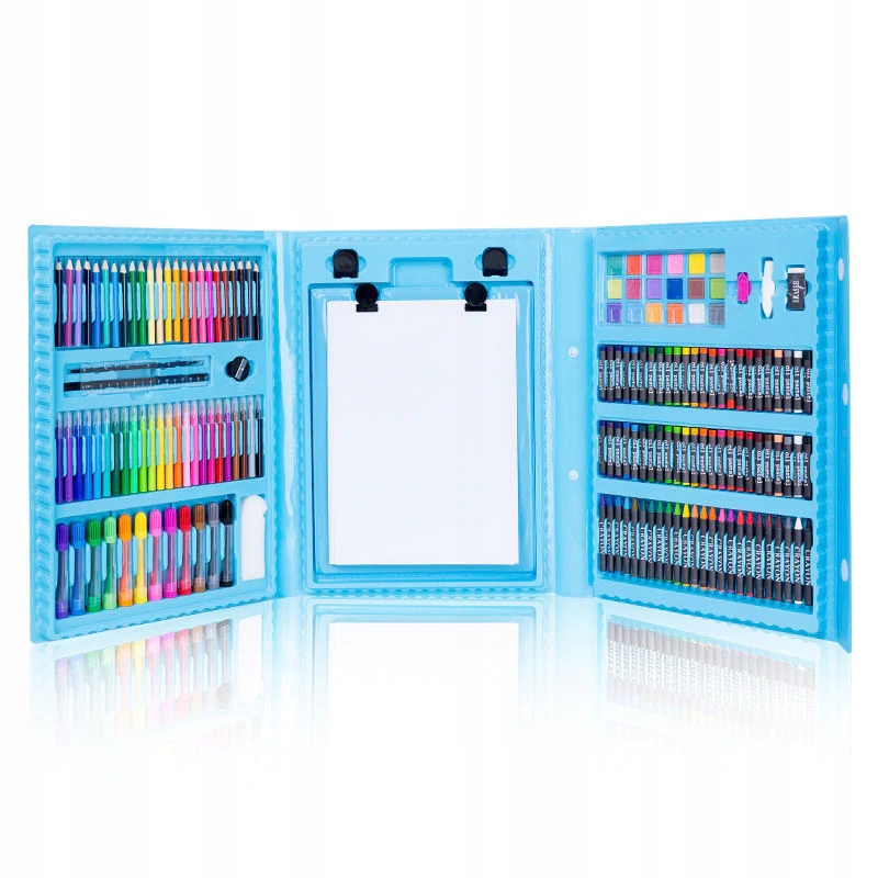 Набор для рисования в чемодане станет прекрасным подарком для каждого маленького художника, широкий выбор цветов мелков, красок и фломастеров обеспечит долгие часы веселья и позволит развить творческое воображение.
