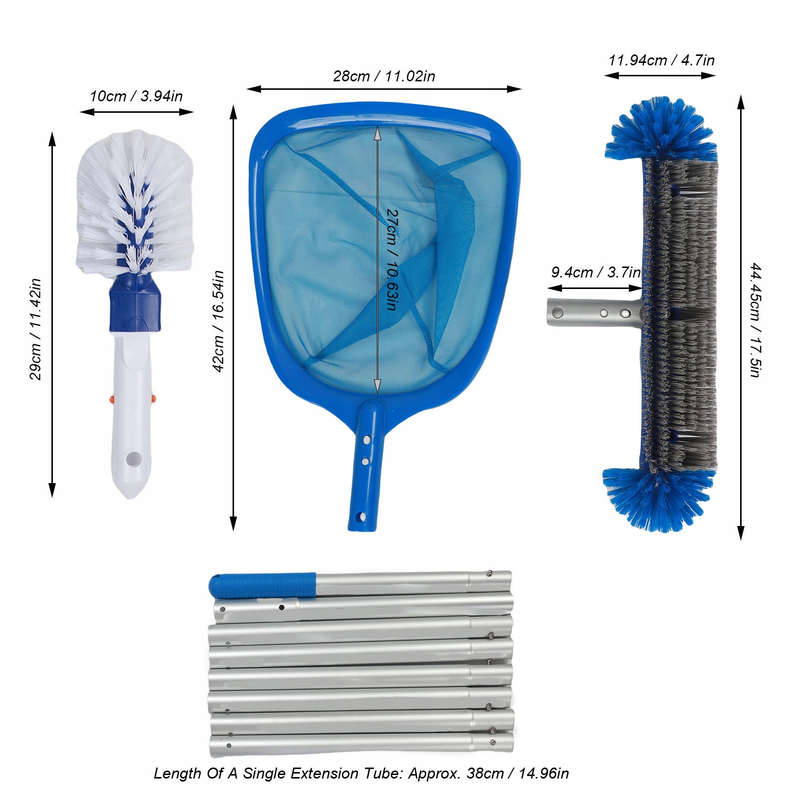 1. Расширенное дизайн прибытия: набор инструментов для очистки бассейна имеет регулируемый длинный полюс, позволяющий пользователям легко добраться до каждого угла бассейна, включая глубокие области и пятна, трудности, повышая общую эффективность очистки.