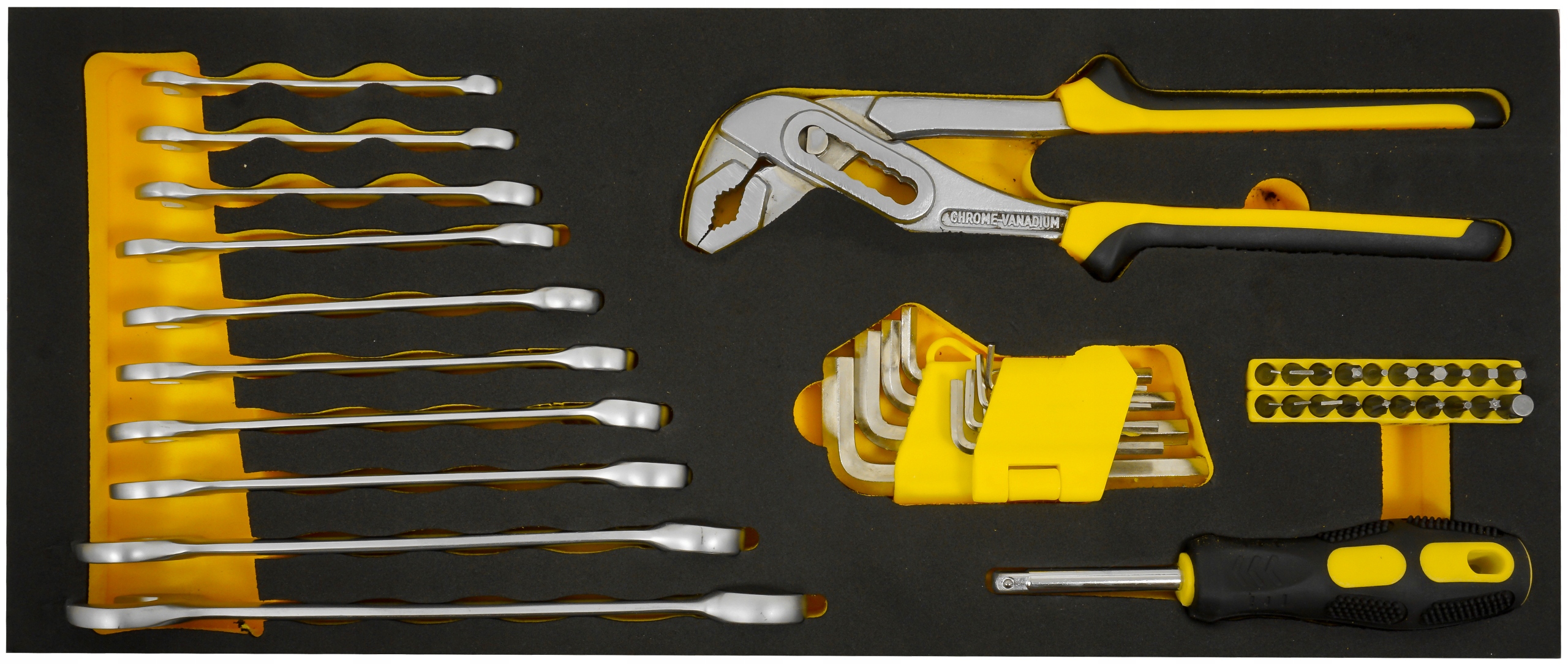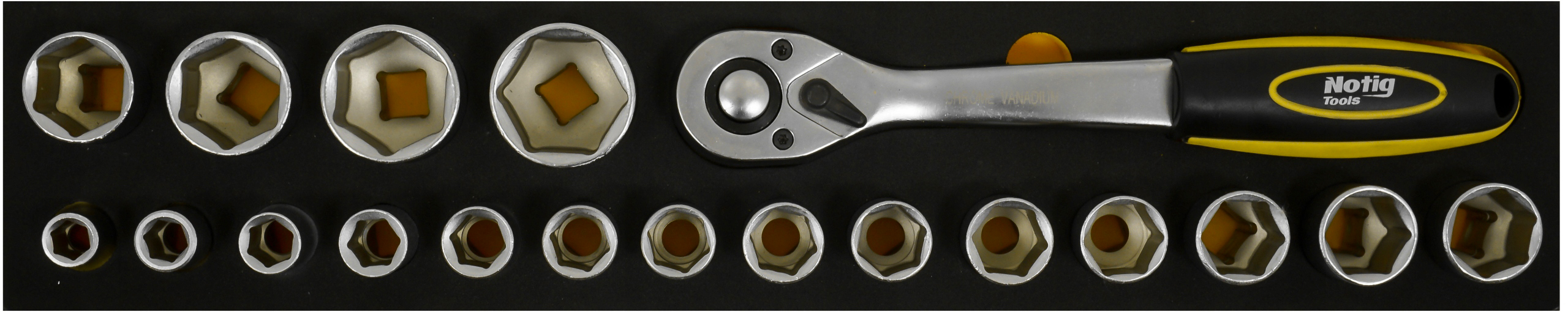 Коробка передач для инструментов с тремя уровнями -изготовлена из материалов высочайшего качества. Идеально подходит для каждой профессиональной мастерской, а также в домашнем гараже. Инструменты, размещенные в специально разработанном прессовании, благодаря тому, что вы можете легко найти то, что необходимо. li> 1/2 "Caps - 10, 11, 12, 13, 14, 15, 16, 17, 18, 19, 20, 21, 22, 23, 24, 27, 30, 32