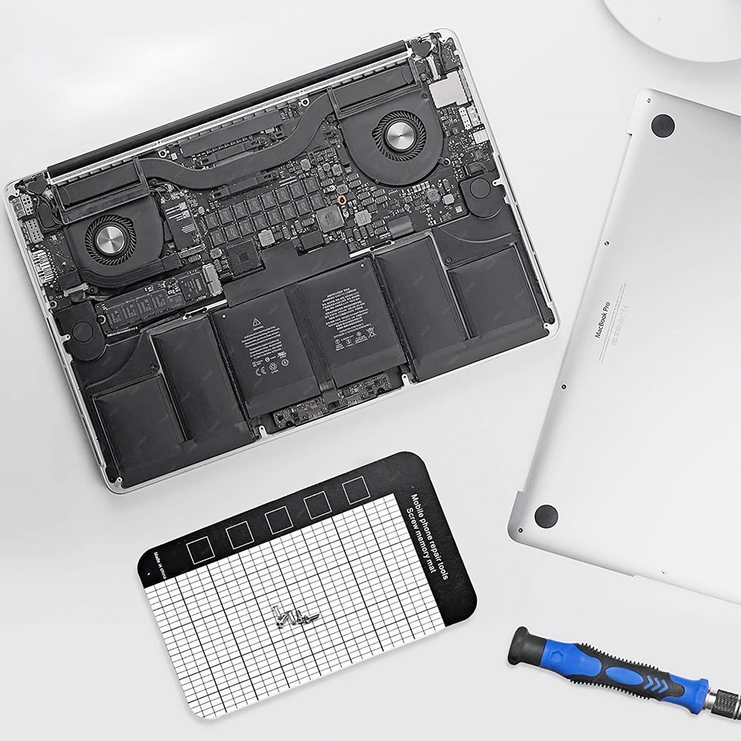 Очень полезный инструмент при разборке электроники. Благодаря магнитному коврику можно не беспокоиться о потере ключевых элементов.