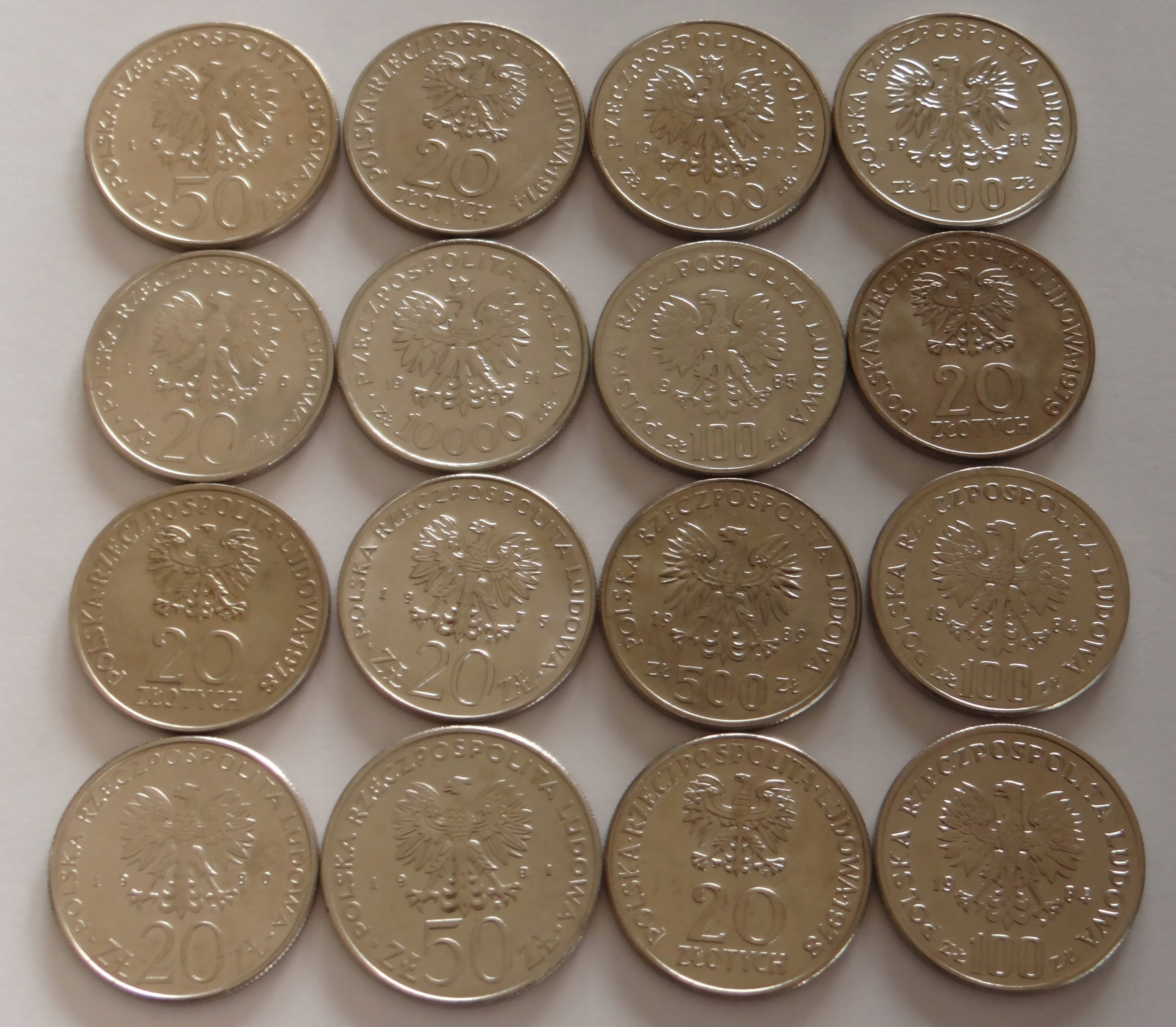 Набор из 16 монет Польской Народной Республики, стан 1