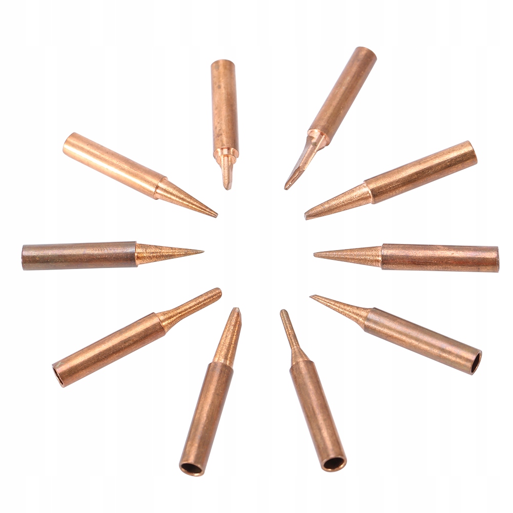 Медные жала подходят для пайки при более низких температурах. В этом наборе 10 видов жал для пайки, и вы можете выбрать подходящее для ваших различных нужд пайки, например, жала b-образной формы, универсального типа, которые можно использовать в любом направлении и легко удерживать в любом положении. паять можно любую поверхность от маленькой до большой; а форма к-типа имеет форму ножа и подходит для пайки путем нанесения жала 3-мя способами: линейным, фронтальным и точечным, используется для узкой пайки, мостовой коррекции и пайки натяжением. Используйте этот набор насадок и сделайте пайку проще.