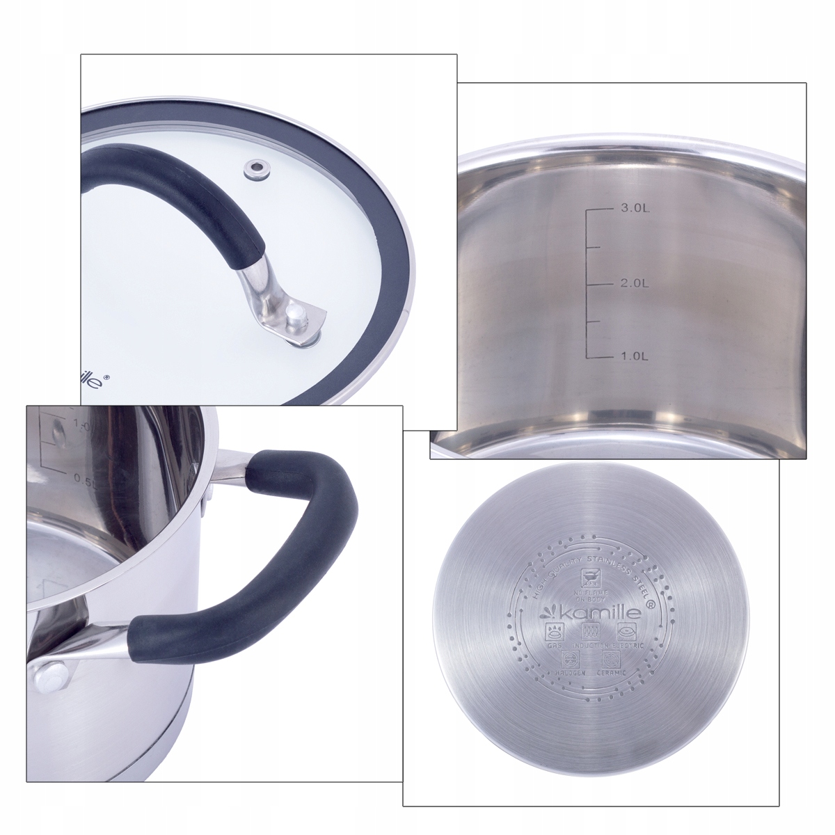 Набор кастрюль Kamille изготовлен из высококачественной нержавеющей стали, имеет 5-слойную индукционную поверхность. дно, что обеспечивает быстрый и равномерный нагрев, что позволяет легко готовить любимые блюда. Непрохладные ручки с силиконовым покрытием.