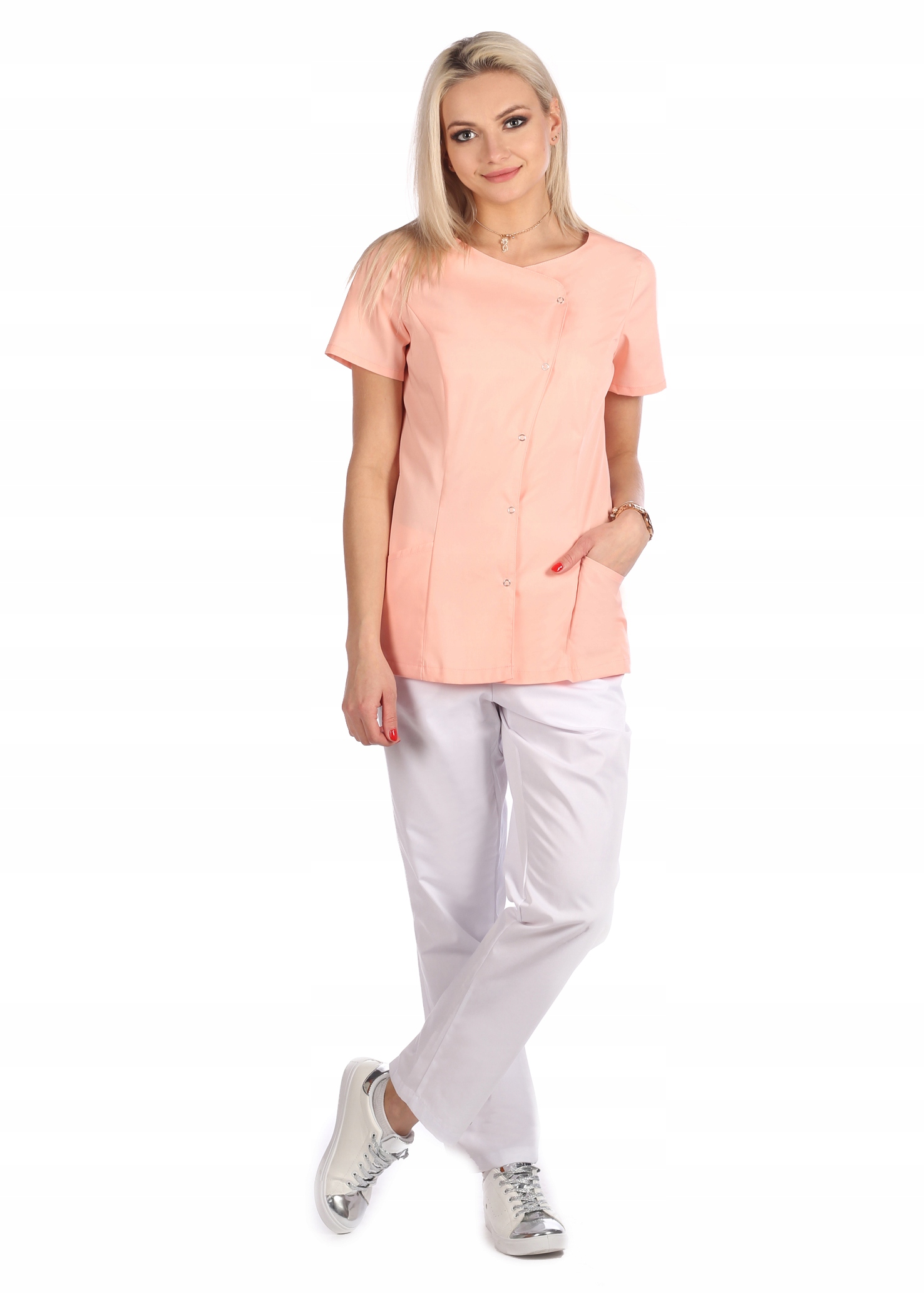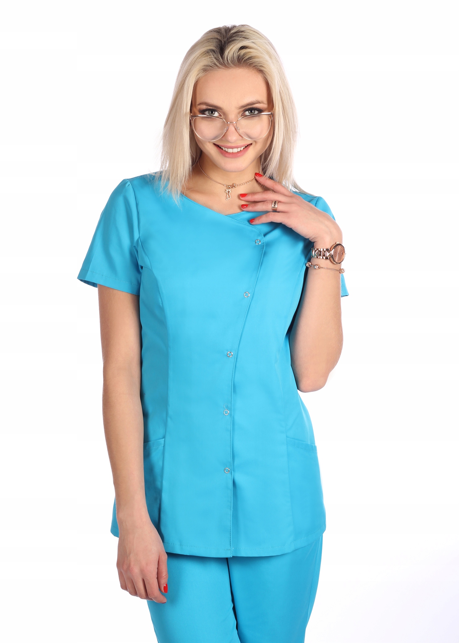 Медицинская или косметическая куртка в сочетании с узкими брюками. Застежки Schaeffer. Две версии крепления под шеей. Французские порезы, моделирование женского силуэта. Два кармана (здесь мы предлагаем разместить логотип или персонификацию компании с этой цели, для этой цели необходимо связаться с производителем.