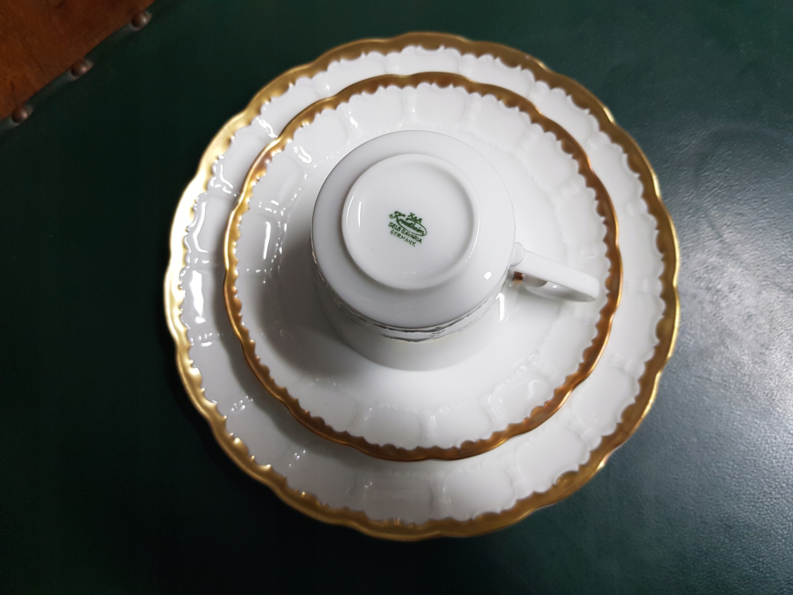 Предмет аукциона - сервиз для завтрака Krautheim, модель Rialto.Белый фарфор.Позолоченные края.Блюдце с глубоким местом для чашки.Все сервизы в одинаково хорошем состоянии.