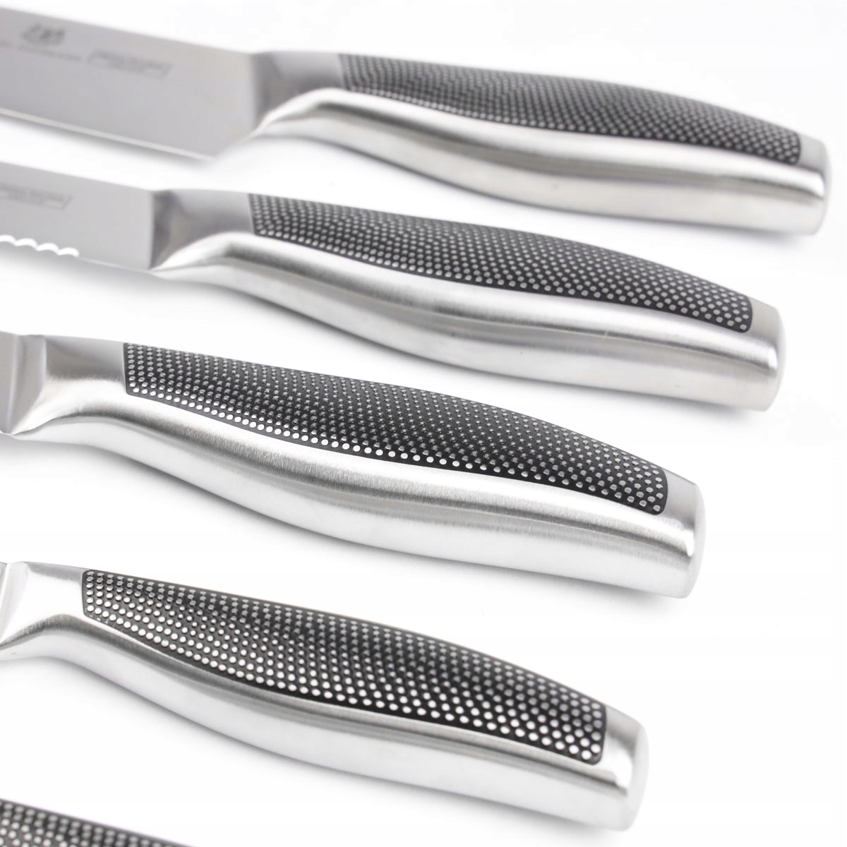 Ножи изготовлены из нержавеющей стали x30cr13 с добавлением хрома, который увеличивает коррозионную стойкость. комфорт во время использования. Это гарантирует определенную хватку, даже в мокрых руках