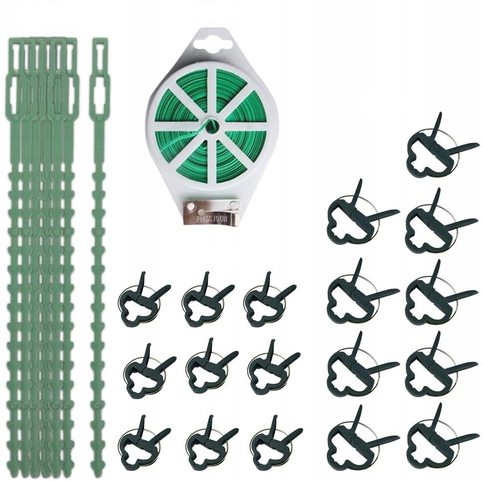 Отличный набор опор для растений — включает 18 зажимов для растений (2 размера), 12 кабельных стяжек и 20 м стяжек для растений с резаком.