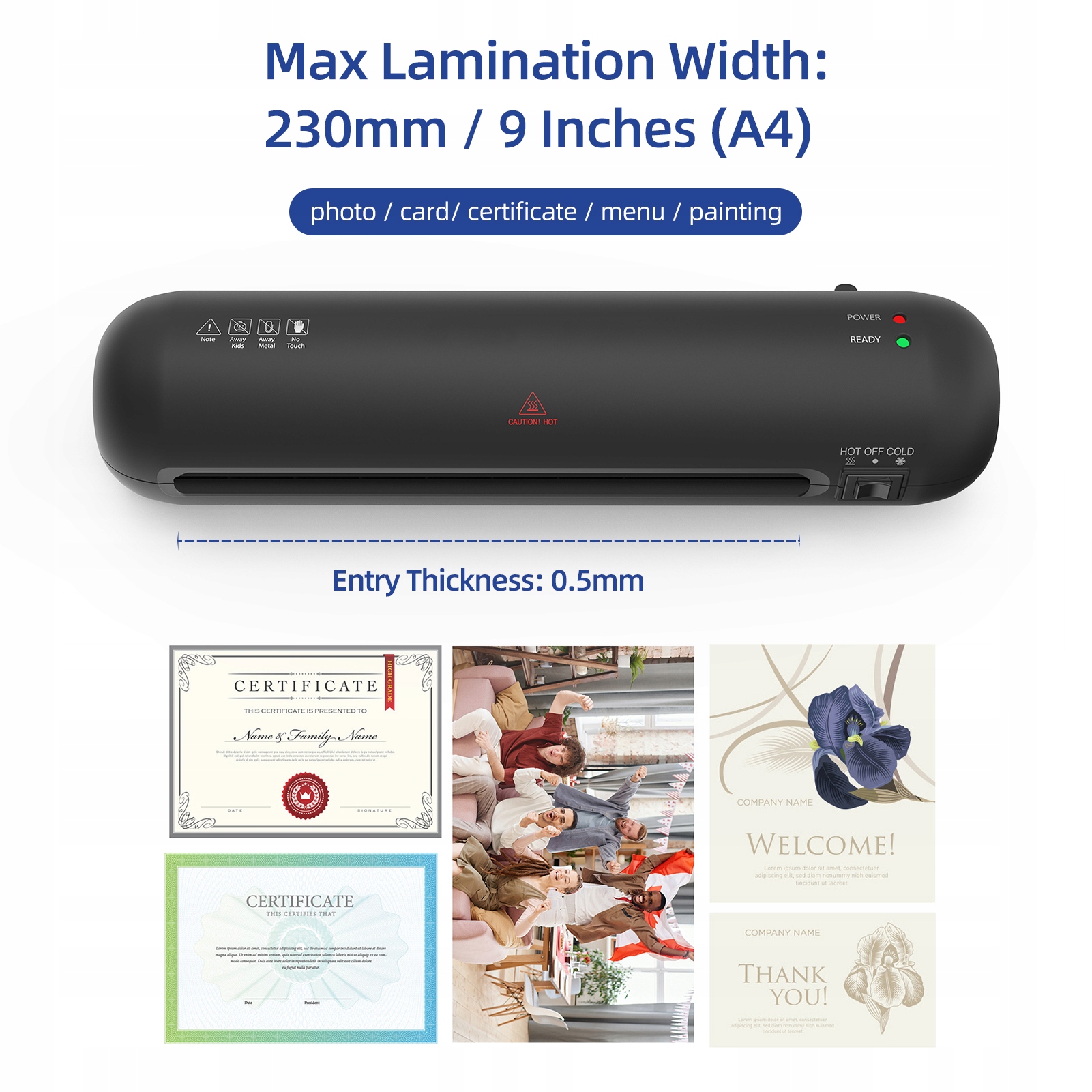 - Горячие и холодные режимы - 2 метода ламинирования, режим теплового и холодного ламинирования. Они идеально подходят для различных типов ламинированных мешков. Подходит для фотографий и документов.
