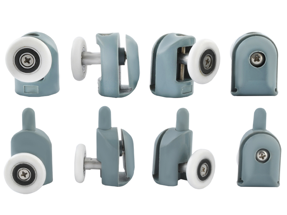 Комплект верхних и нижних роликов для душевой кабины с насадками и бортиками. Верхний ролик имеет регулируемый соединительный элемент.Ролики установлены на подшипниках, подходят для стекла толщиной 4-6 мм, подходят к различным типам душевых кабин.