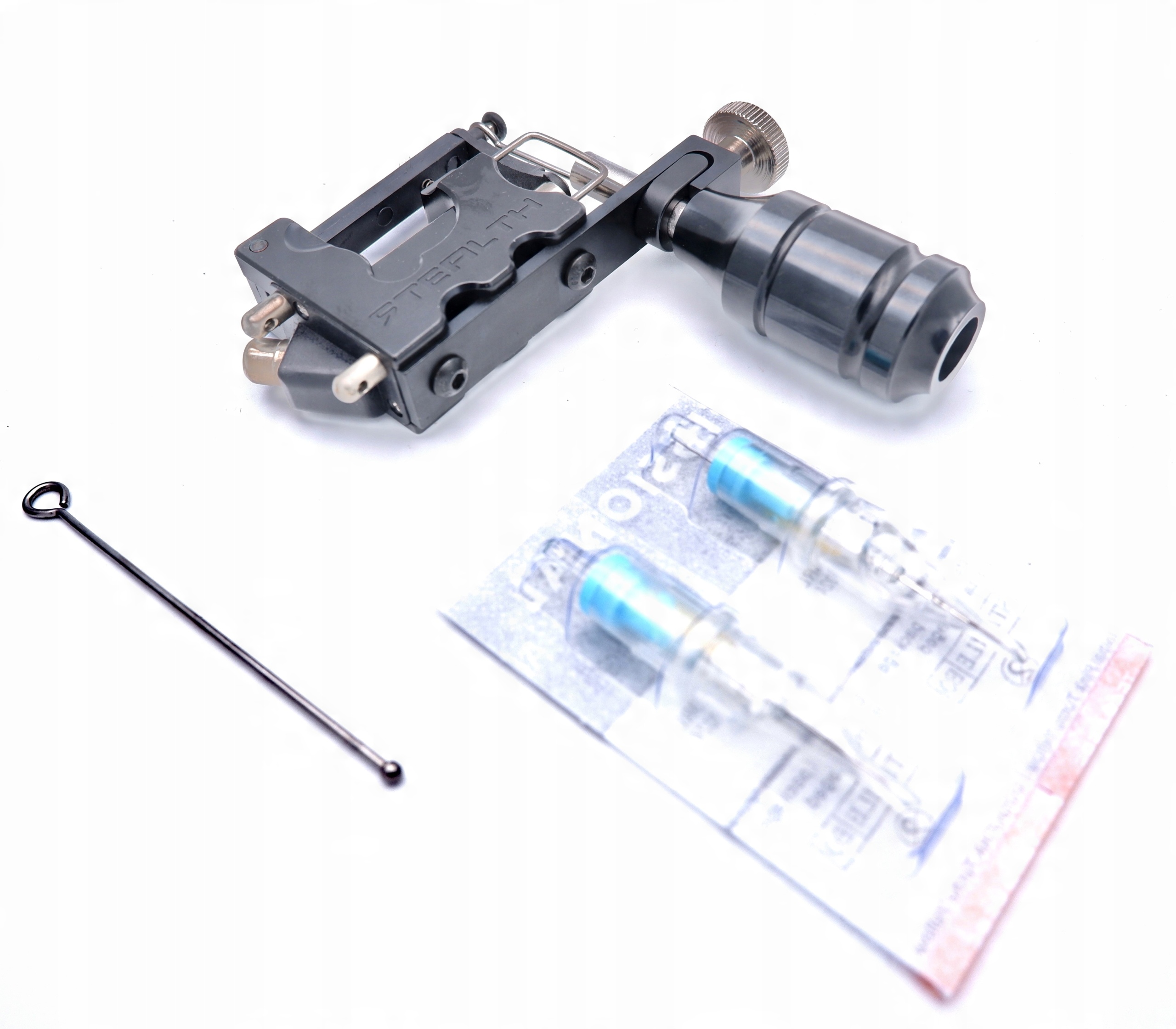 Весь набор представляет собой сейф набор в алюминиевом чемодане с большим запасом аксессуаров, а также новейшим профессиональным цифровым блоком питания Hurricane Deluxe и тату-машинкой STEALTH 2.0 с картриджной горловиной прямо от производителя.