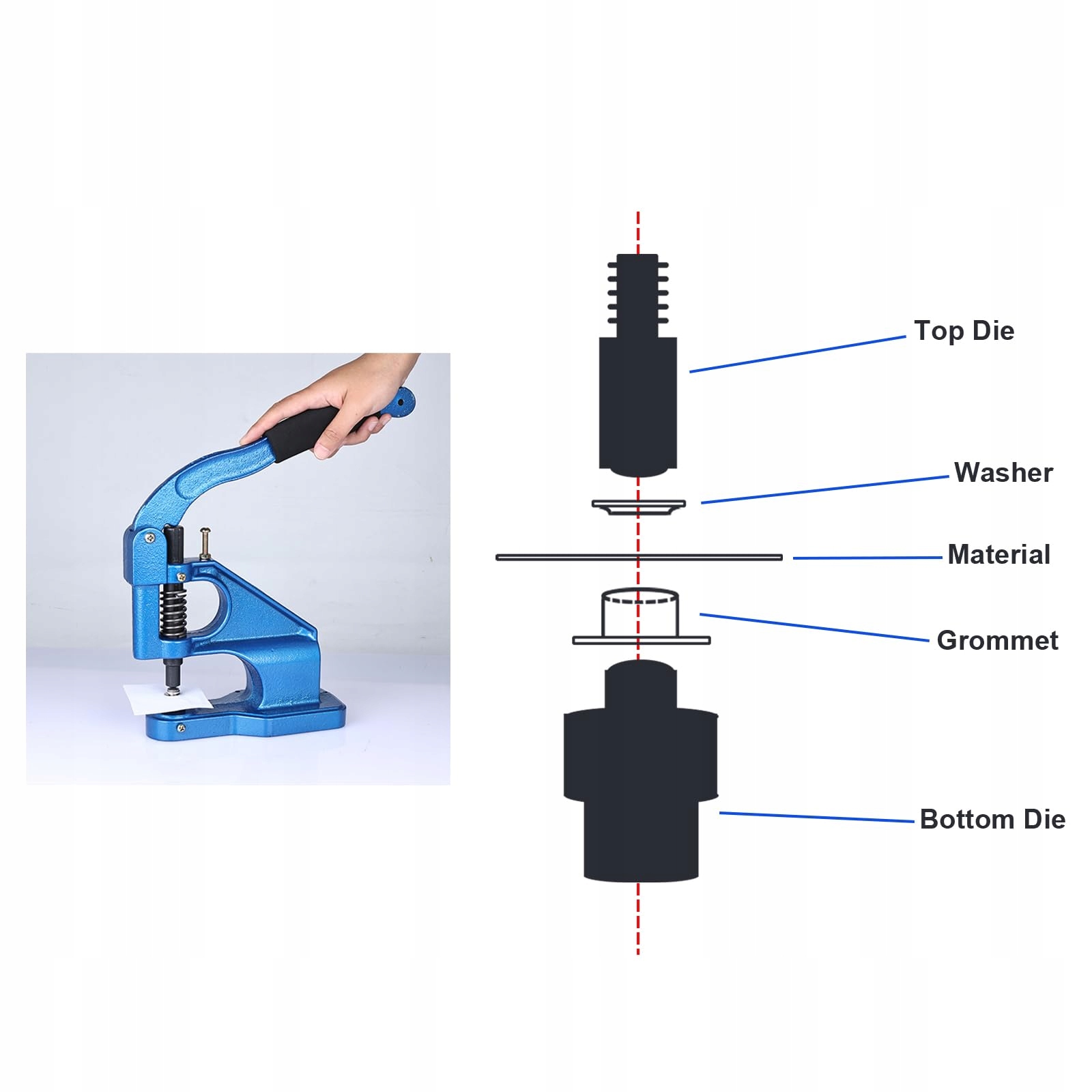 Freetec Manual Press Machine для пробивания сетки, нажатие NIT, нажатие нажатия, ручное нажатие, заклепки, глаза, 3 взаимозаменяемых матриц (#0#2#4) с 1500 ПК.